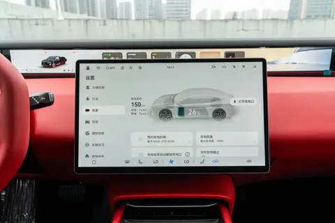 车身侧面的线条灵动流畅,两条“引力线”从车头优雅地延伸至车尾,营造出一种悬浮的视觉效果。大掀背设计不仅优化了空气动力学性能,将风阻系数降低至0.22Cd,还巧妙地释放了后排头部空间。隐藏式门把手与黑化悬浮车顶的搭配,让整辆车充满了未来科技感,远远望去,仿佛是一台无车顶的敞篷轿跑,回头率极高。尾部设计则是功能与美学的结合。一体式高位刹车灯宛如疾驰的流光尾迹,点亮后辨识度极高。尾翼和后扰流板不仅能够有效降低40%的后轴升力,使高速行驶更加稳定,还通过叠层设计优化了后备箱的开口。由204颗LED灯珠组成的流光尾灯,在夜间闪烁着独特的节奏感,停车后仿佛仍在流动,细节之处尽显用心。