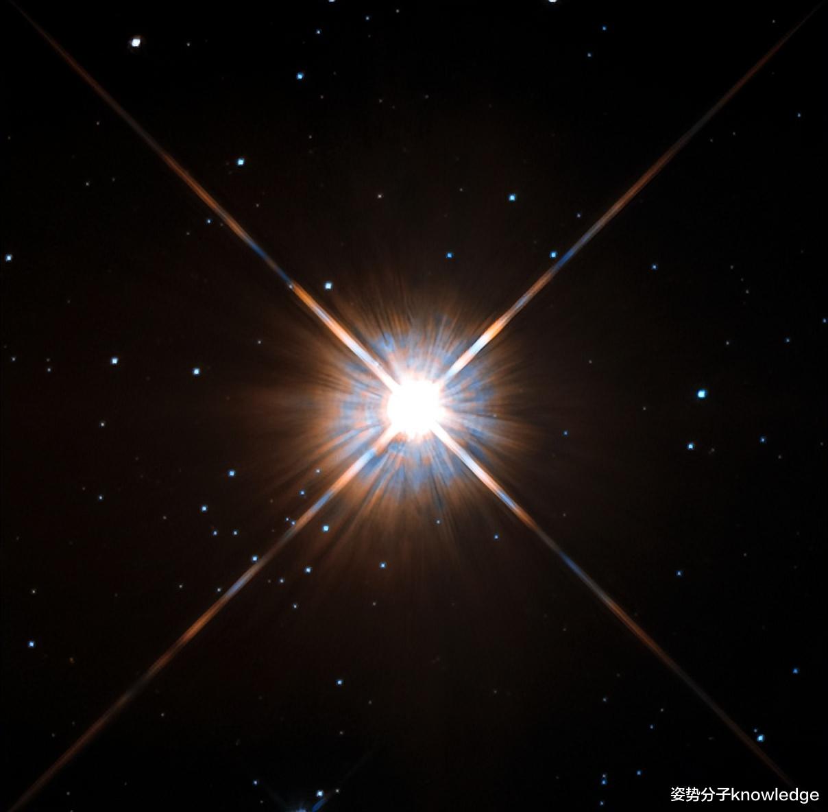 不说别的,先看看最近的恒星比邻星,以人类目前的科技水平,呈现出来的最高清的图片,也就是这样的——