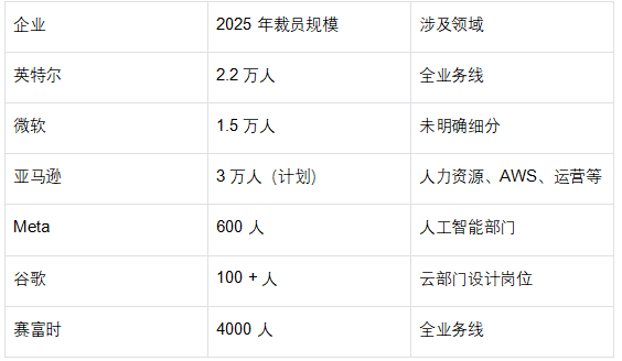亚马逊的动作并非孤例,2025 年科技行业正经历新一轮 "瘦身潮":
