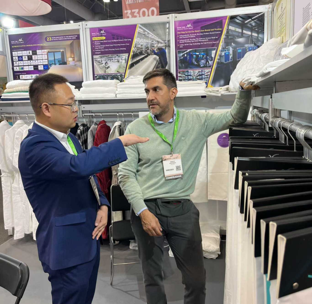 参展团队还结合全球酒店布草市场洞察,在展位现场与客商针对性交流,解读拉美酒店需求痛点并探讨产品本土化落地路径。