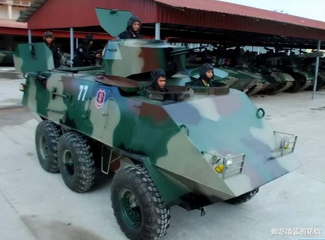 一定数量的VM-90轻型多用途装甲车,是意大利依维柯(Iveco)生产的民用轻型卡车/厢式货车而非正经八百的军用装甲车,柬埔寨可能将其改装为简易武装巡逻车加装机枪与钢板,强化其防护能力和火力打击等能力,但非制式军用装甲车。此类车辆成本极低(<5万美元),但防护仅能抵御手枪弹,实战价值有限,用来执行边境巡逻、打击民间武装或者拿来打击毒贩、或者拿来运兵啥的二线工作还是可以的。