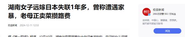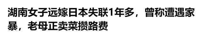 信息来源:极目新闻2024-12-11 湖南女子远嫁日本失联1年多,曾称遭遇家暴,老母正卖菜攒路费