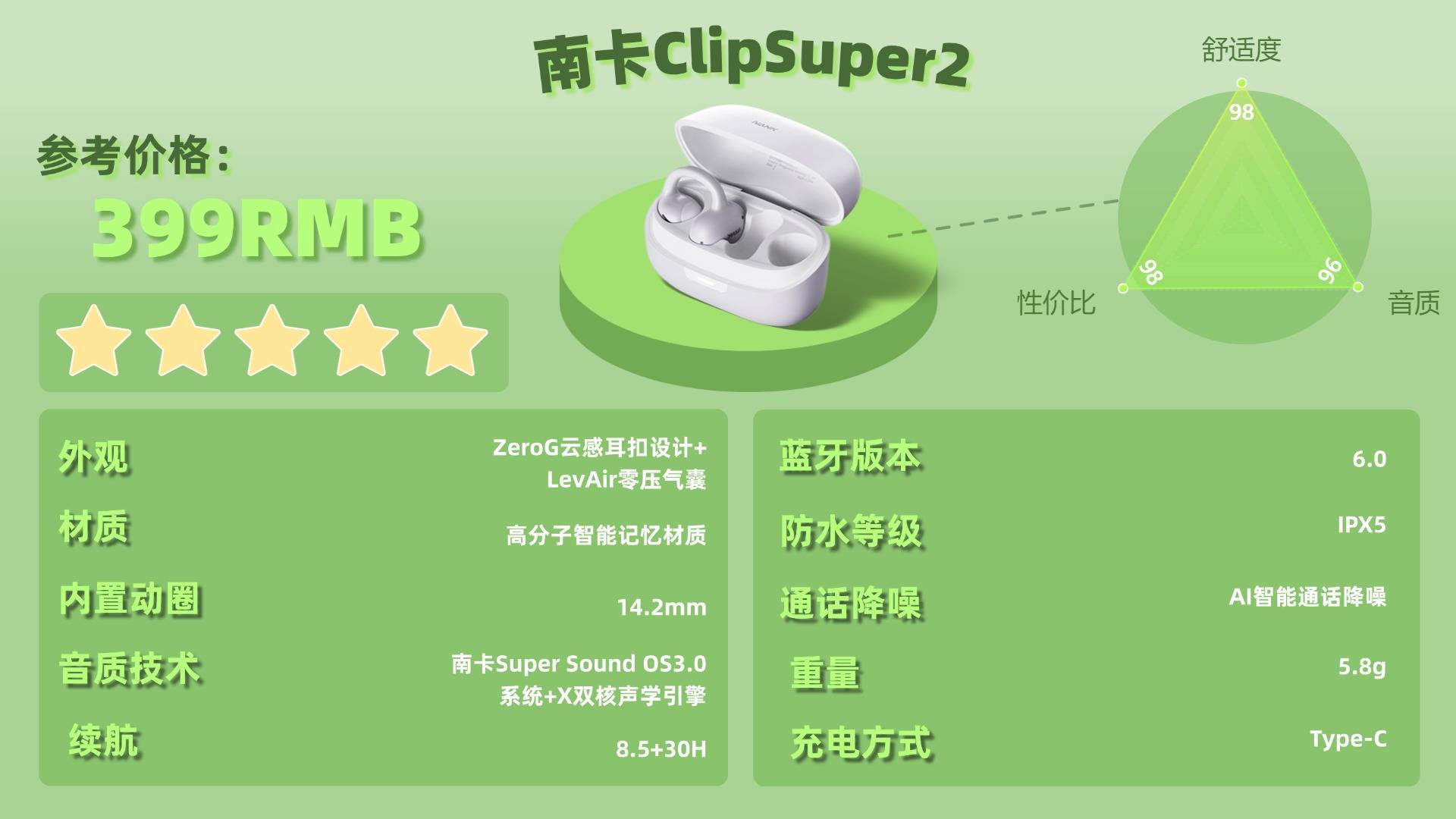 南卡ClipSuper2搭载全新蓝牙6.0芯片,连接速度与稳定性双双跃升,即便身处地铁、商场等复杂环境,依旧能保持稳定连接,杜绝断连卡顿的烦恼。耳机还贴心配备游戏模式,0.06秒超低延迟实现音画同步零误差,游戏党也能畅快体验。通话体验同样亮眼,升级后的AI智能降噪算法精准过滤环境杂音,清晰拾取人声,让通话音质自然通透。续航表现更是惊喜,满电状态下综合续航可达40小时,彻底告别电量焦虑。这般扎实的基础配置,完全不输市面上的千元级耳机,性价比优势拉满。