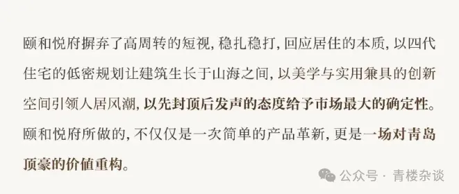 目前,颐和悦府项目已经封顶,属于青岛楼市比较罕见的“先封顶后发声”,但是第一次亮相发声,就玩起了阴阳:
