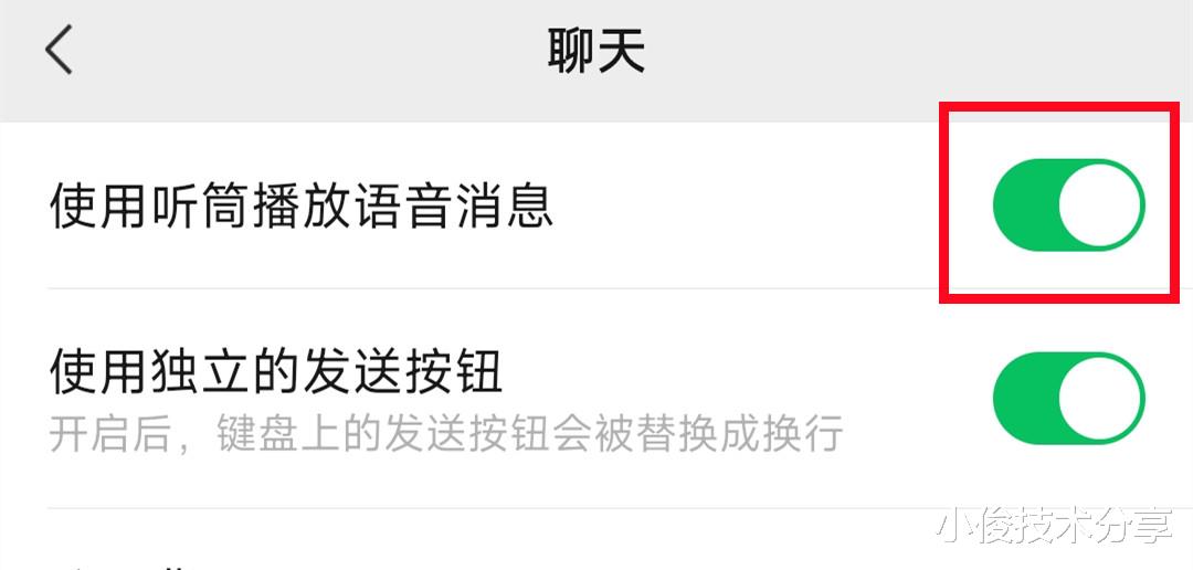 第四步、在这里找到“使用听筒播放语音”,把右边的开关打开,小耳朵就出现啦。