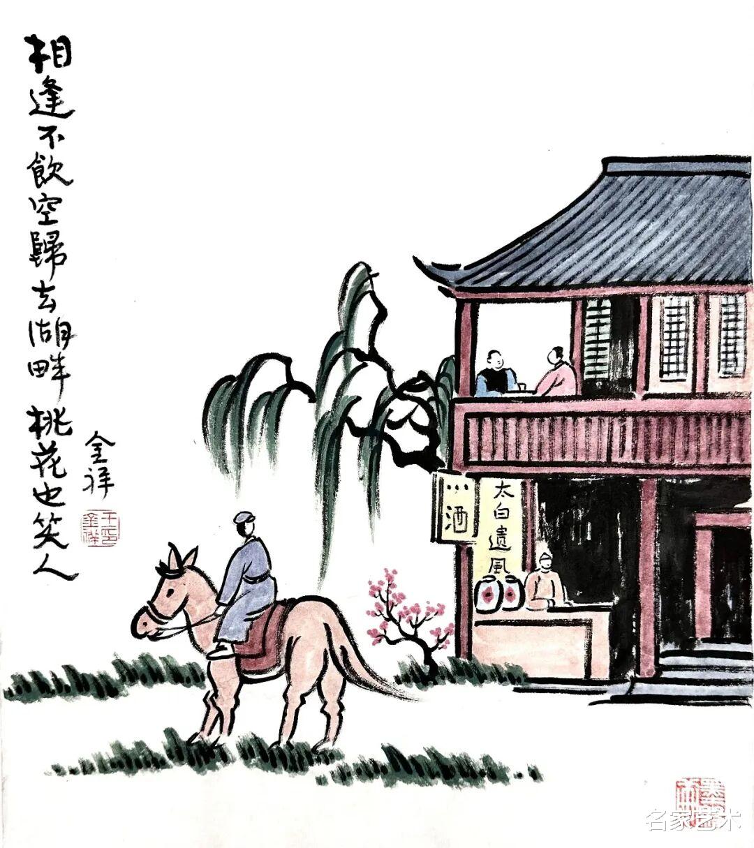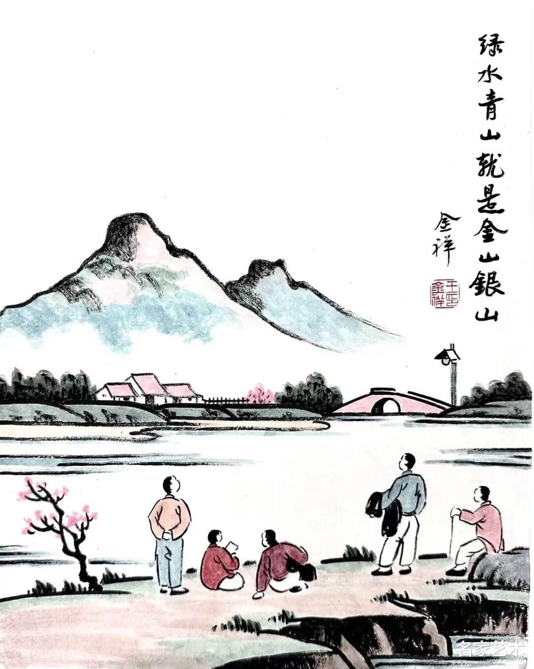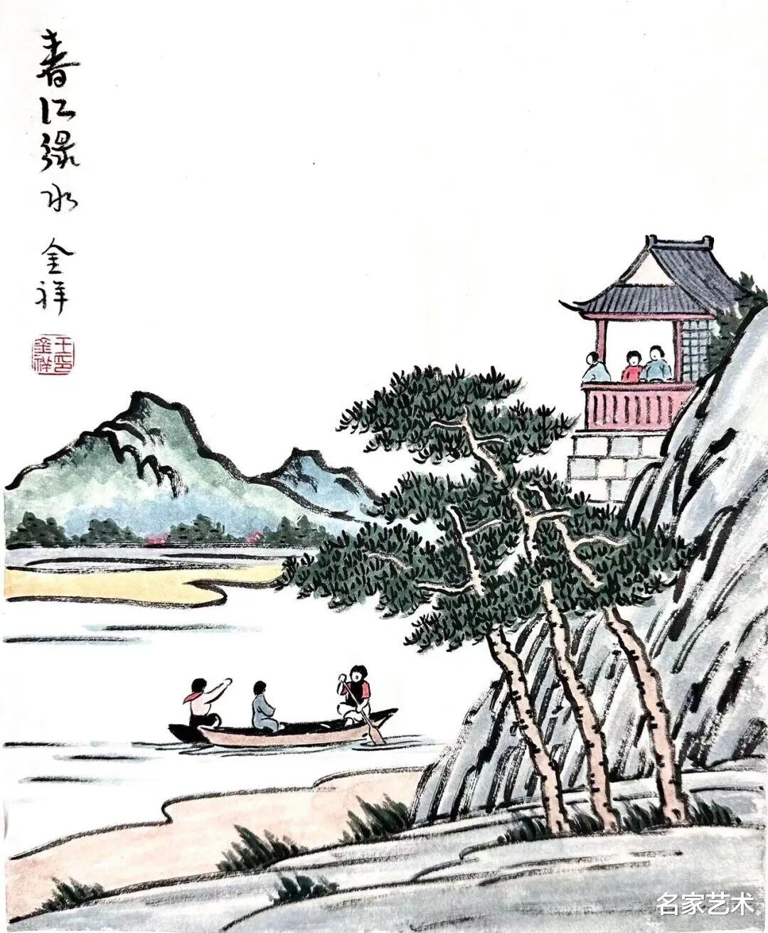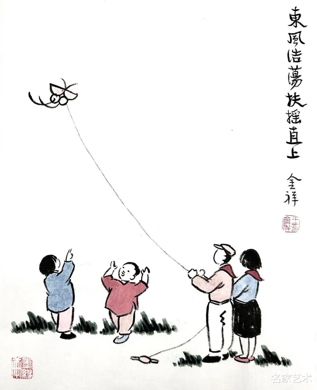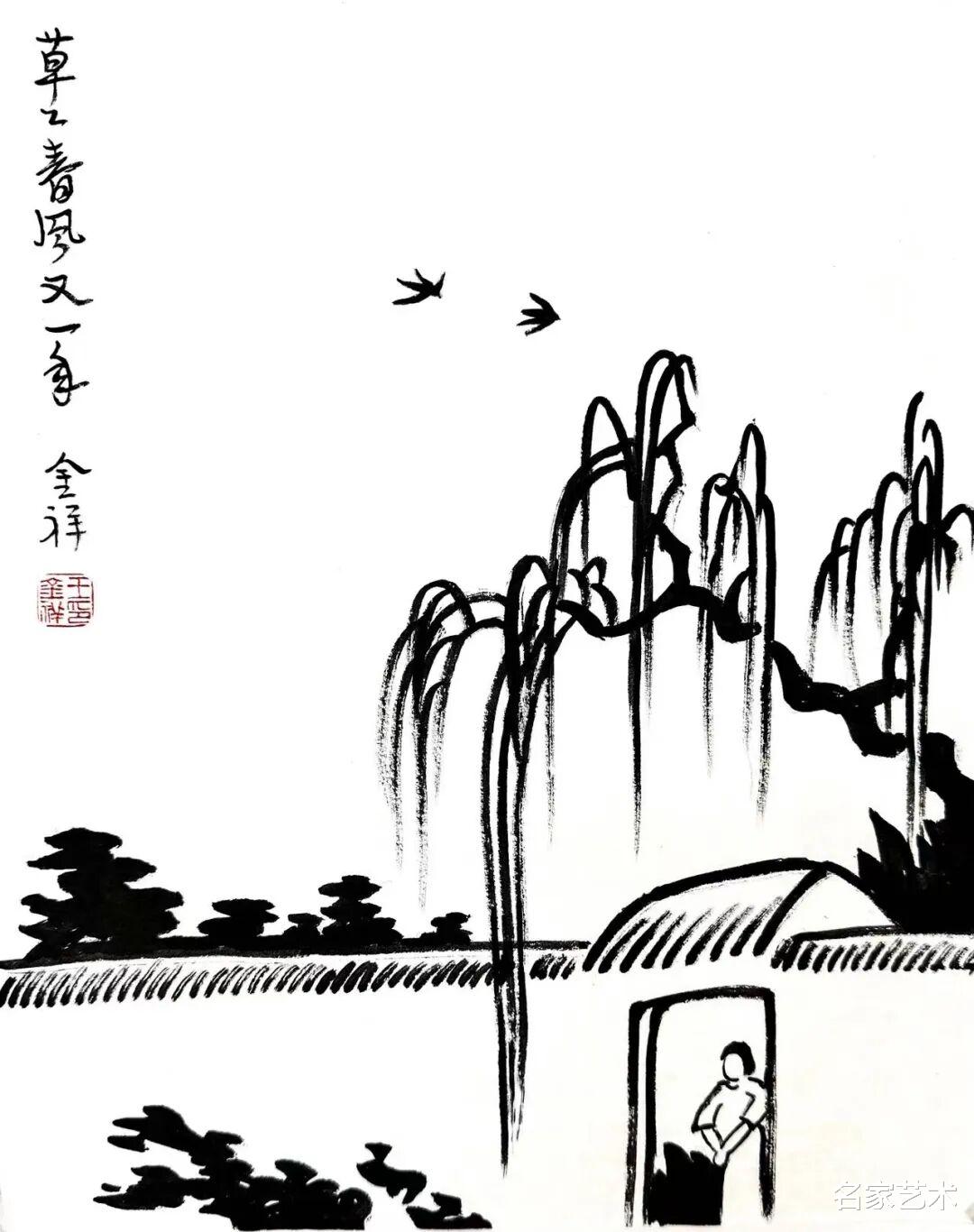 王金祥先生的作品,以景写情、以形传神,清新朴素的审美趣味,将文人画的笔墨程式和他的艺术特色相结合,不仅注重物象线条和创新元素,还将人物表情刻画得出神入化。笔下是人情世故,纸上是情趣盎然,在方寸间缓缓流淌出生机与诗情,不愧为一代文学艺术大师丰子恺的传承弟子。这里的每一幅作品,都是一枚枚刚刚萌发的芽苞,等待与您目光相遇的刹那,绽放成精神世界中的万紫千红。
