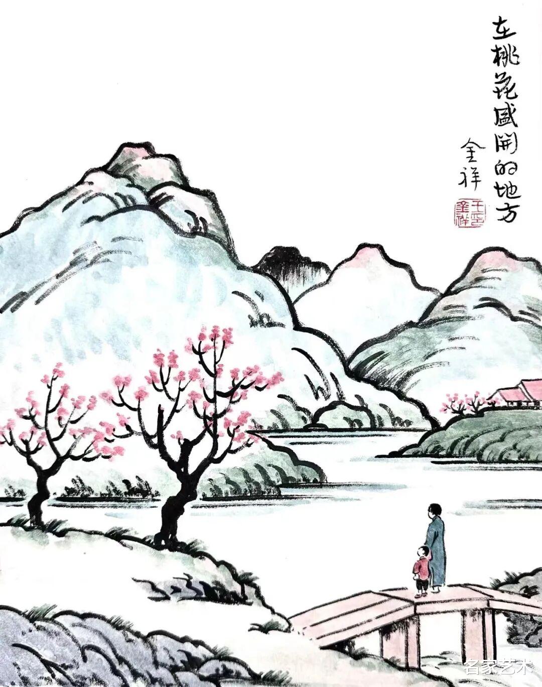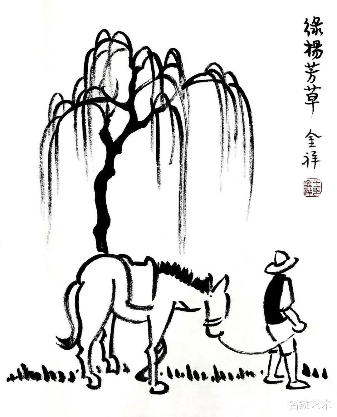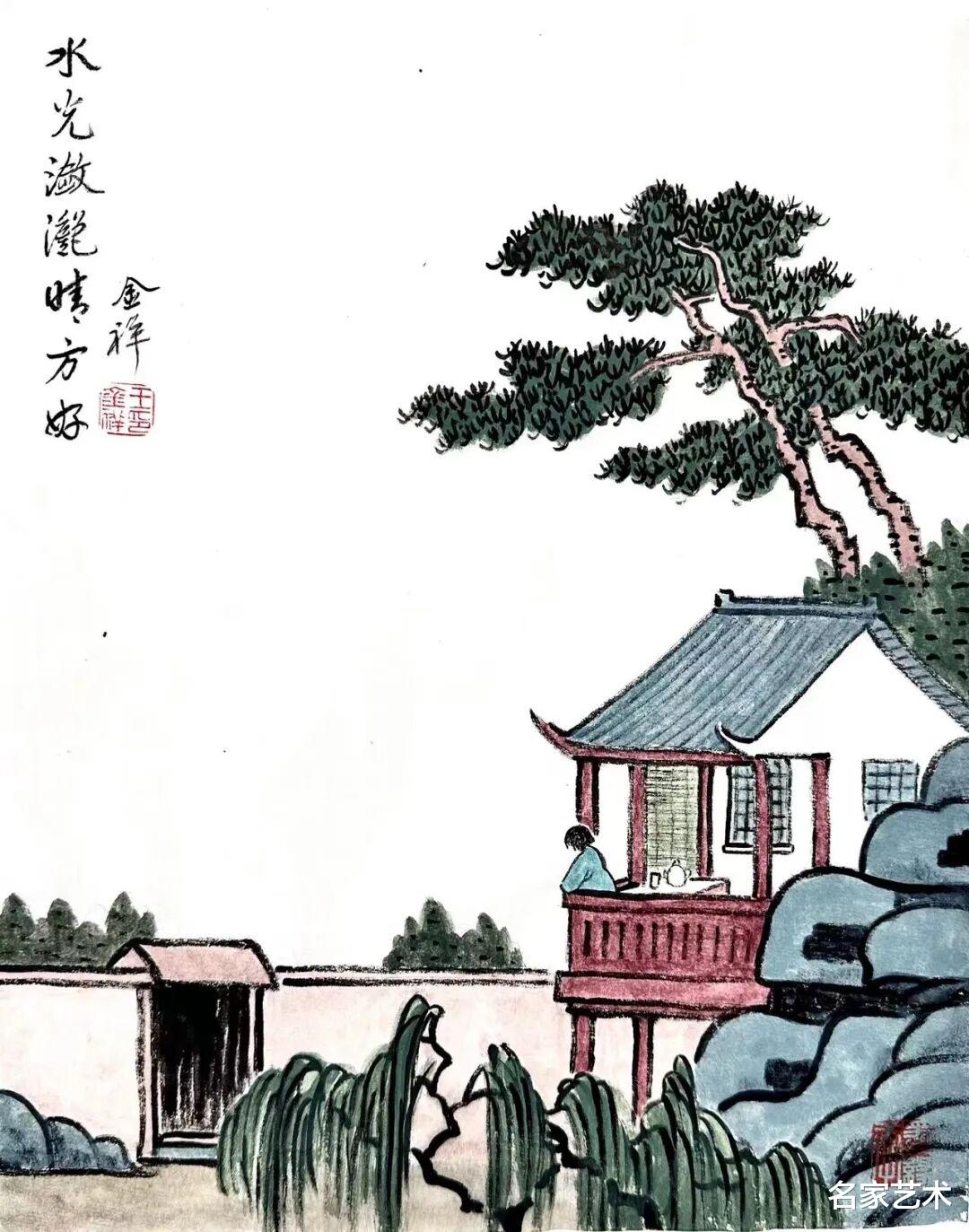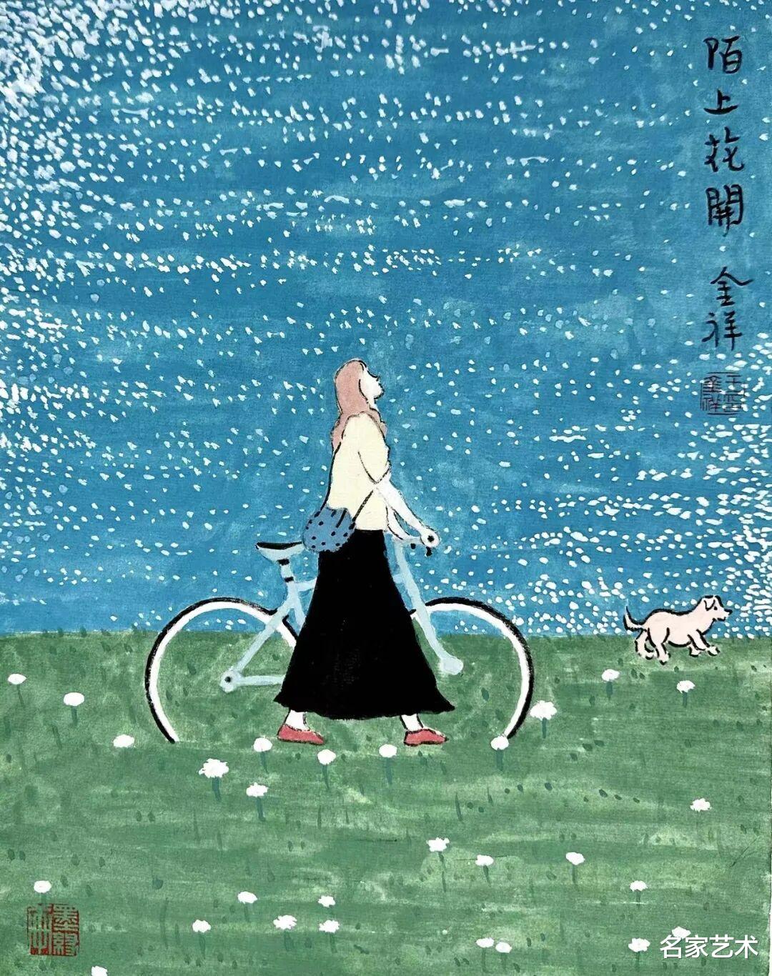 王金祥先生的作品,以景写情、以形传神,清新朴素的审美趣味,将文人画的笔墨程式和他的艺术特色相结合,不仅注重物象线条和创新元素,还将人物表情刻画得出神入化。笔下是人情世故,纸上是情趣盎然,在方寸间缓缓流淌出生机与诗情,不愧为一代文学艺术大师丰子恺的传承弟子。这里的每一幅作品,都是一枚枚刚刚萌发的芽苞,等待与您目光相遇的刹那,绽放成精神世界中的万紫千红。