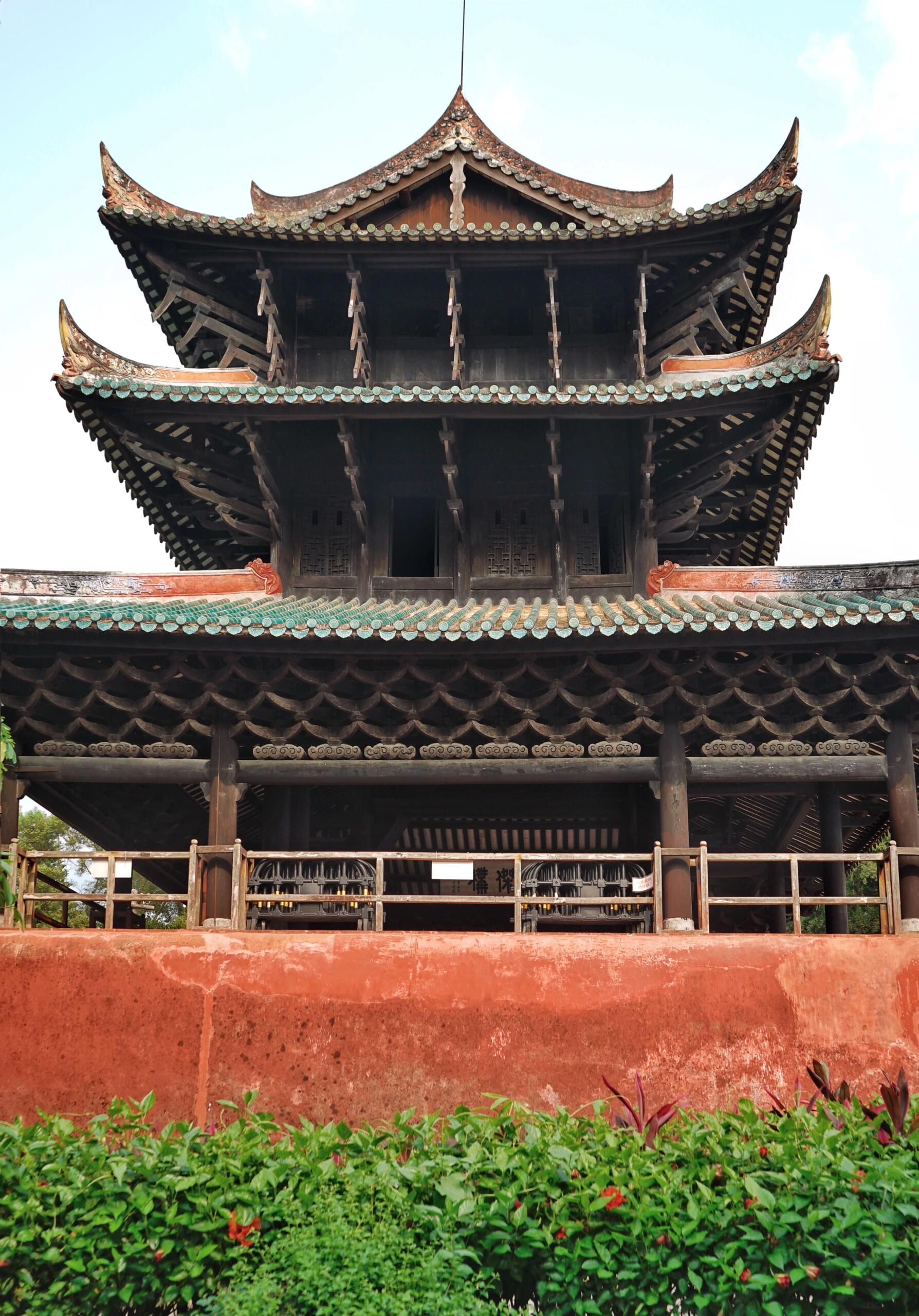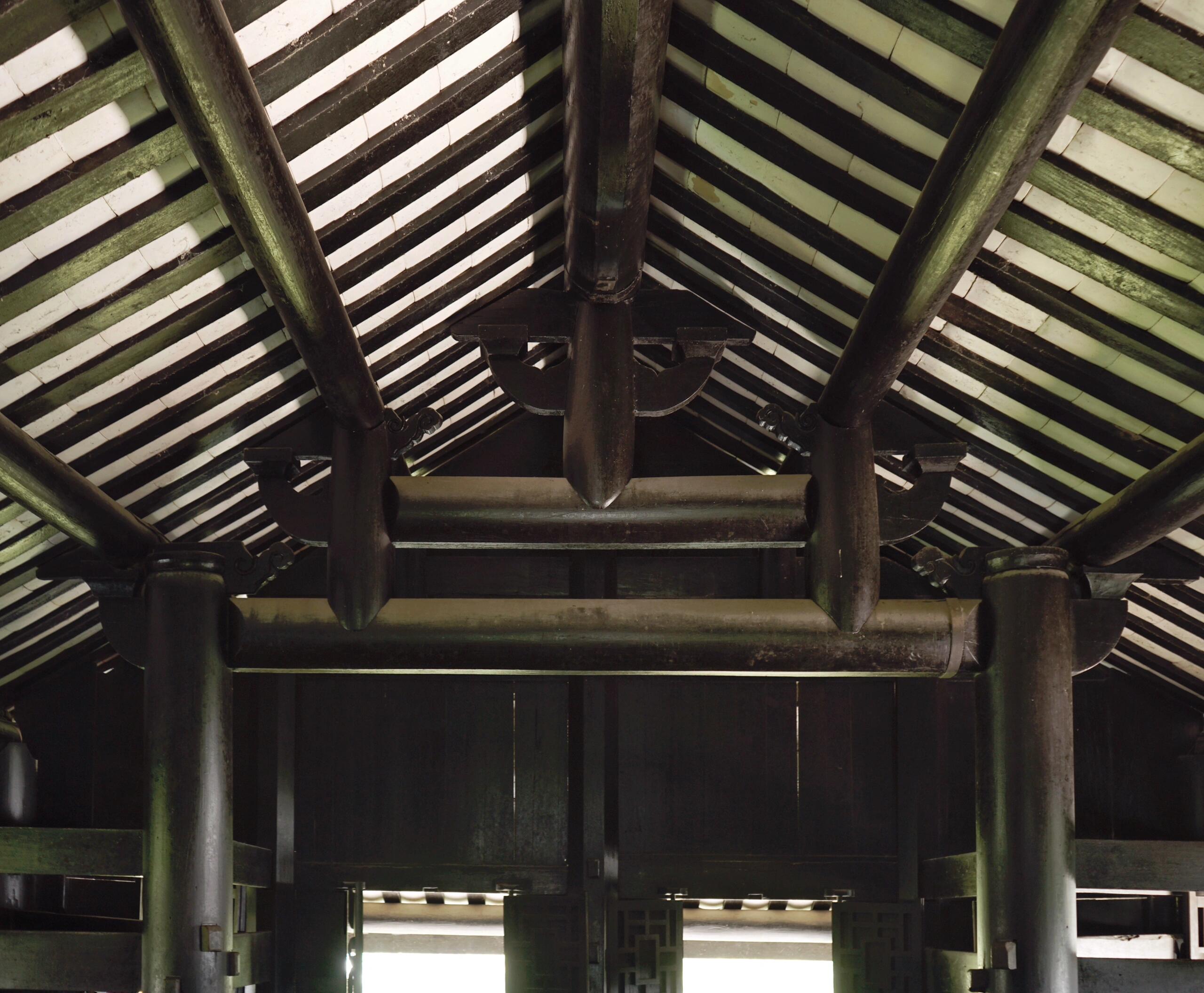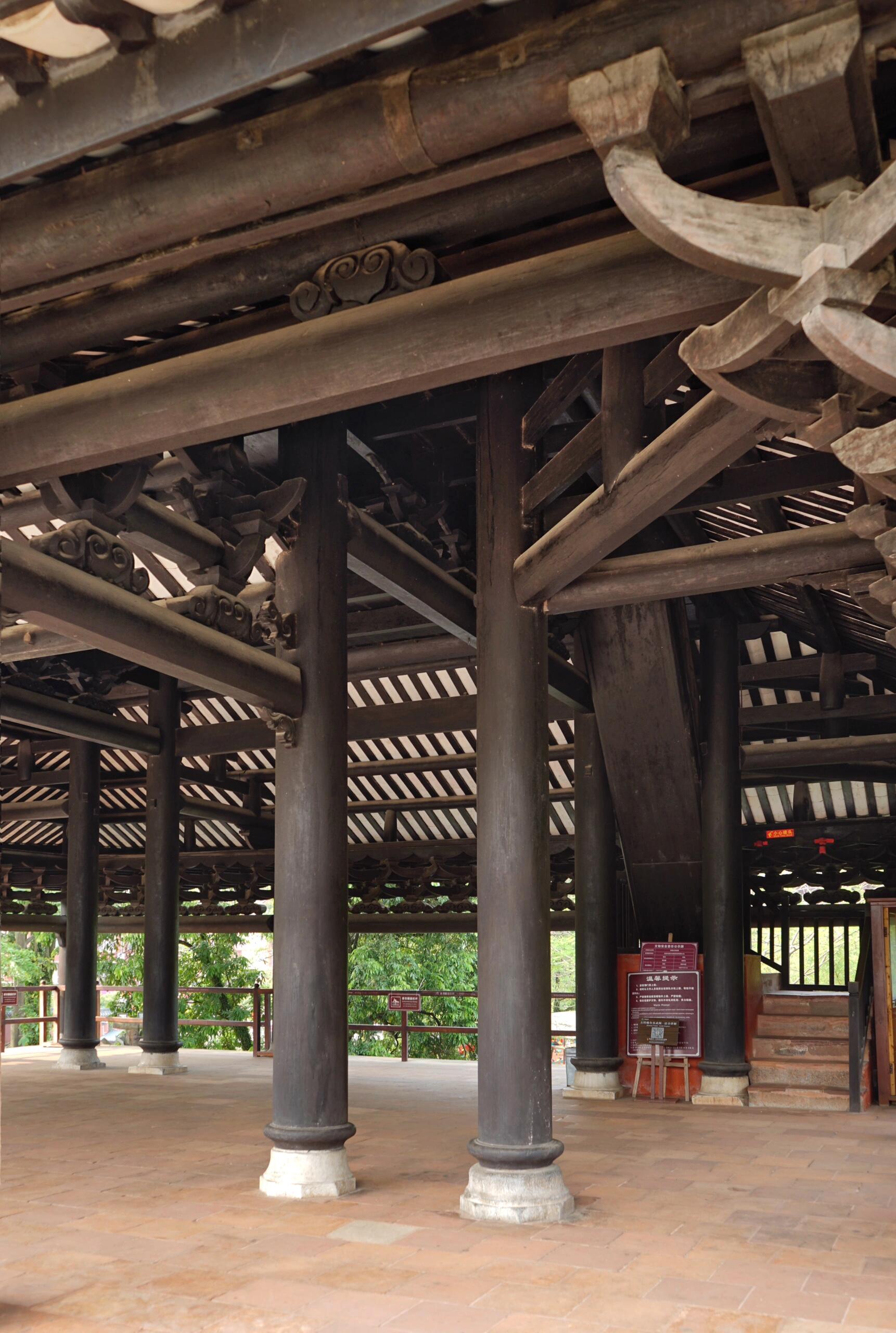 伸手轻轻触摸二楼的木梁,指尖能感受到木材的纹理与岁月的痕迹。这些木材大多是当地出产的格木,质地坚硬、耐腐蚀,经过工匠们的精挑细选与精心雕琢,成为构建楼阁的绝佳材料。梁架上的榫卯结构精密得如同天然生长在一起,没有一丝缝隙,四百多年的风雨侵蚀,非但没有让这些衔接处松动,反而因为木材的收缩与膨胀,变得更加紧密牢固。不得不感叹,古代工匠们不仅拥有精湛的技艺,更有着对自然规律的深刻理解,他们将力学原理与建筑美学完美融合,造就了这座“无钉无铆、四柱悬空”的建筑奇迹。