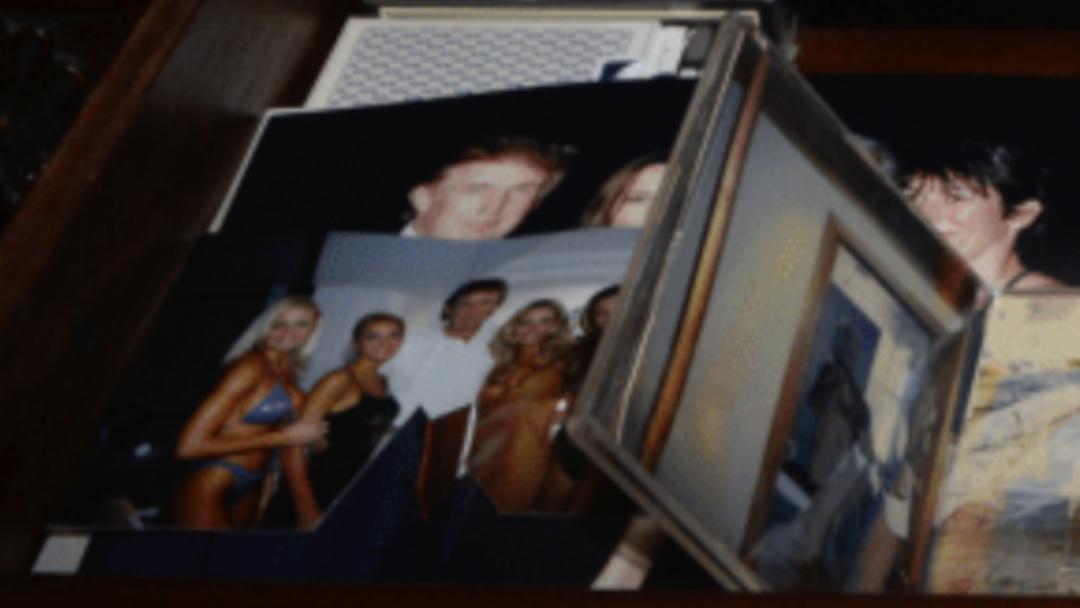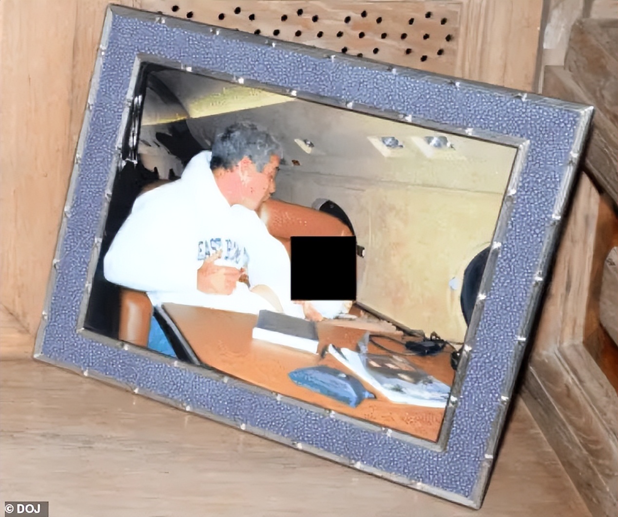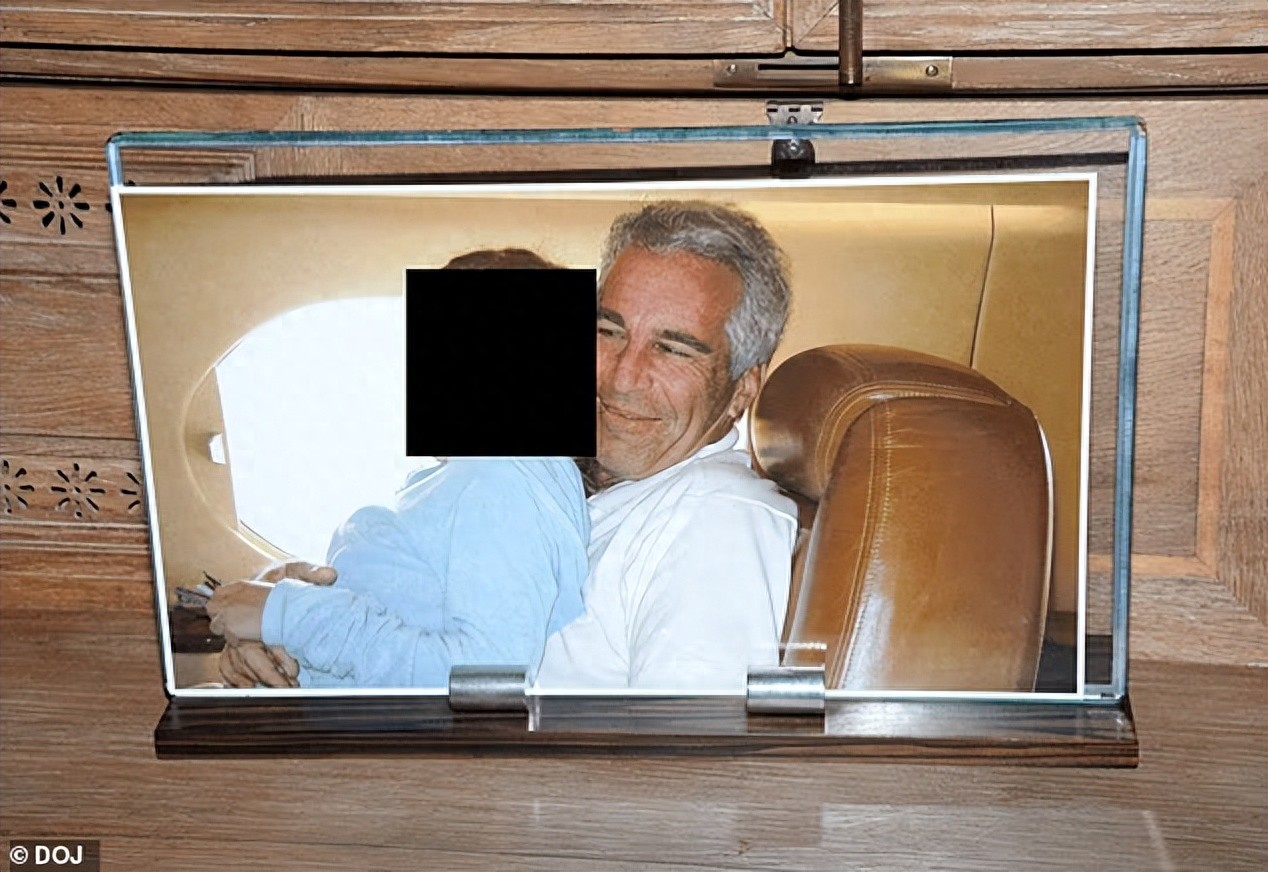 这些从未公开过的照片被装裱起来,摆放在爱泼斯坦恶魔岛庞大庄园里一个雕工精细的木制书架上。