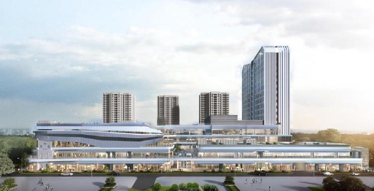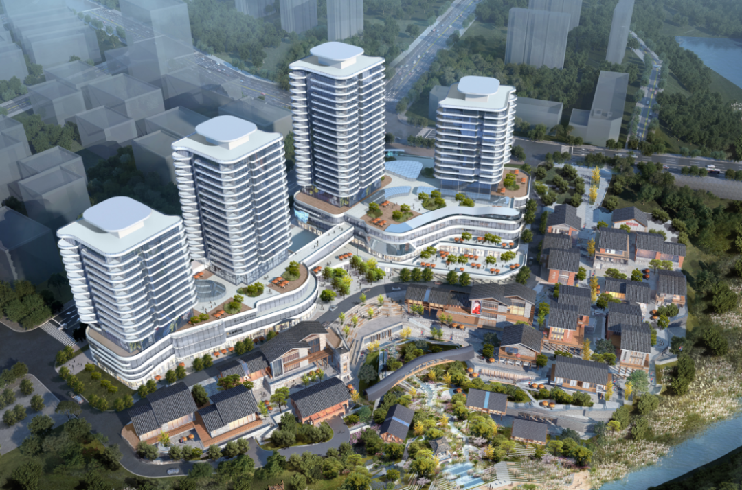 项目占地面积5.7万平方米,总建筑面积约21.43万平方米,项目商业约6.5万㎡,由购物中心(约4.4万㎡)和街区商业(约2.1万㎡,共计 16栋)组成,还有写字楼(约7.3 万㎡,共计4栋)和车库(约7.2 万㎡,共计1672个)。