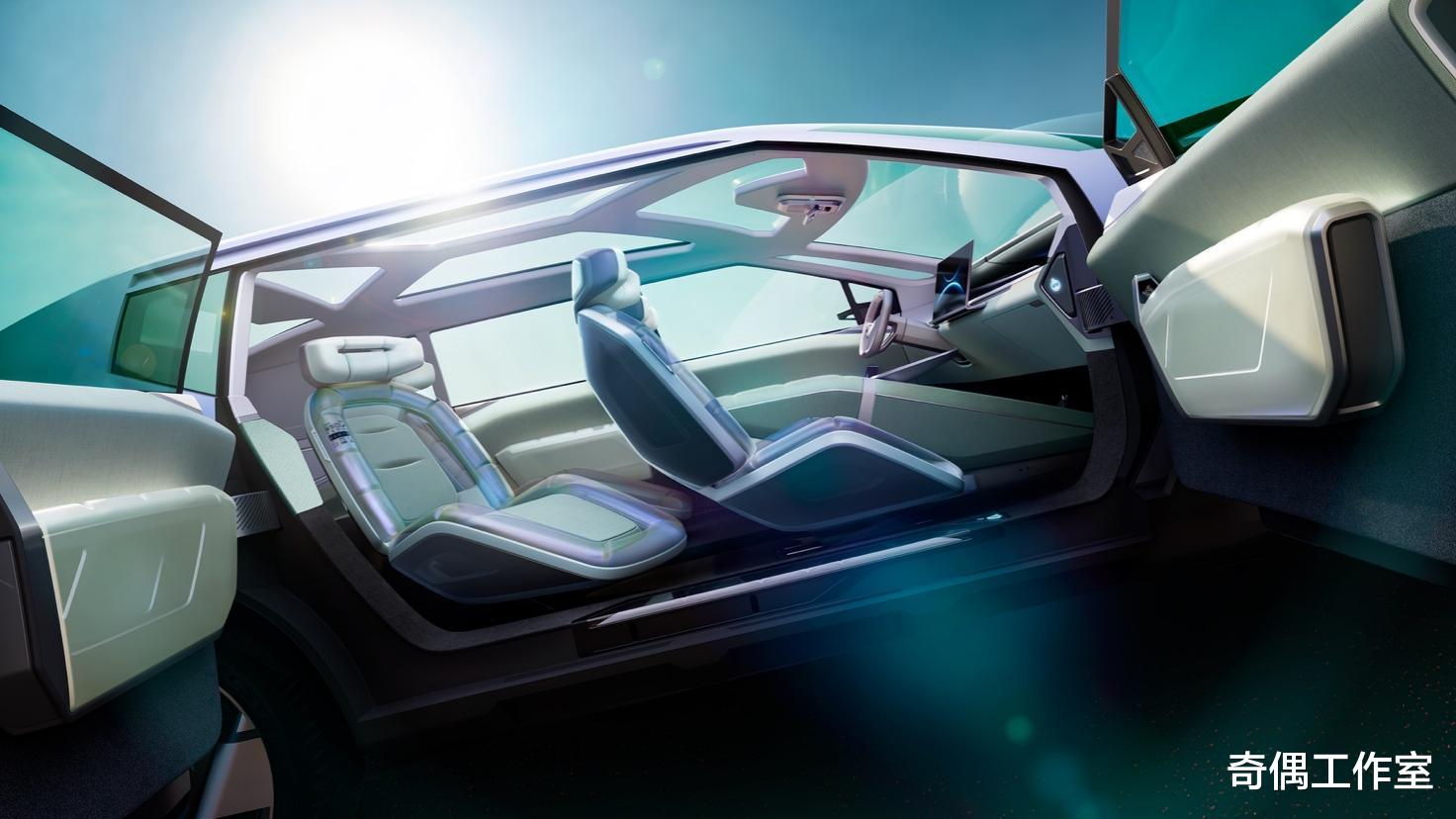 而EARTH CONCEPT(地球)则以地球的生命力与韧性为灵感,将家用纯电 SUV重新定义为融合自然、科技与力量的守护空间。其车身采用极光之盾配色,一体化车身轮廓搭配锐利的水晶质感线条,呼应地球的地质风貌,辅以岩石质感护板、外露式螺栓等硬核细节,塑造强悍的越野气质;玻璃车顶与透明框架设计,则平衡了坚固与轻盈;锐利的渐变灯光系统勾勒出细微的“H”形品牌标识,暗藏现代汽车品牌基因;集成式车顶行李架与隐藏式双开启车门,提升了日常使用便利性,更有行星主题“彩蛋”设计,给人意想不到的惊喜。