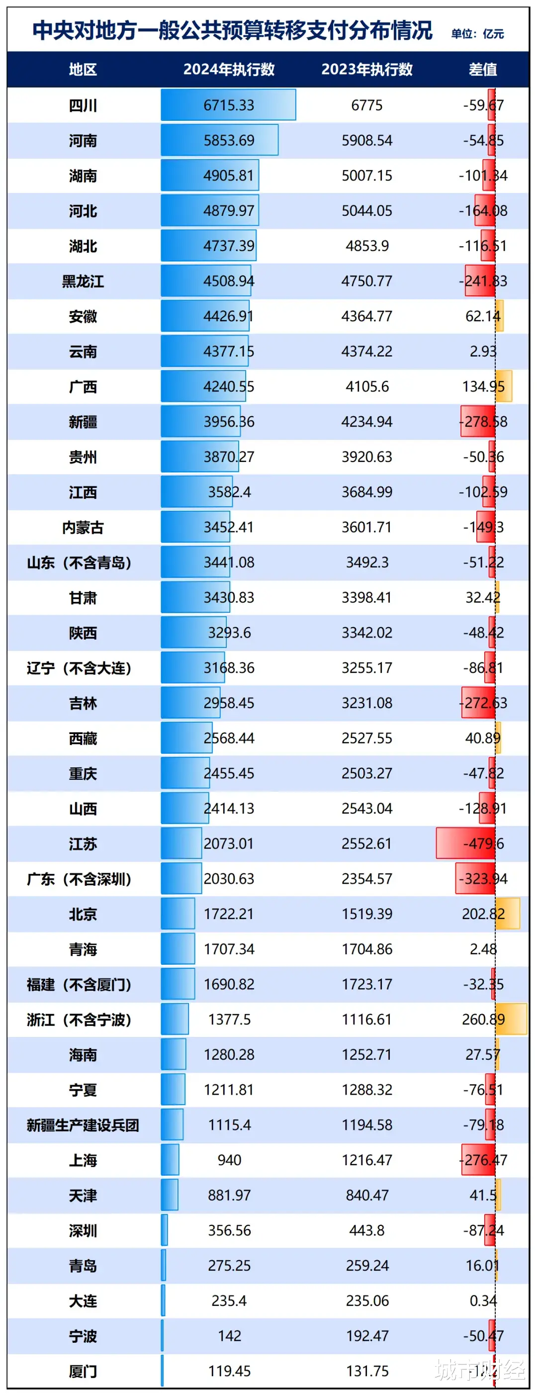 去年中央对广东省(不含深圳市)财政转移支付是2030.63亿元,这是给除了深圳之外广东其他20个城市的。