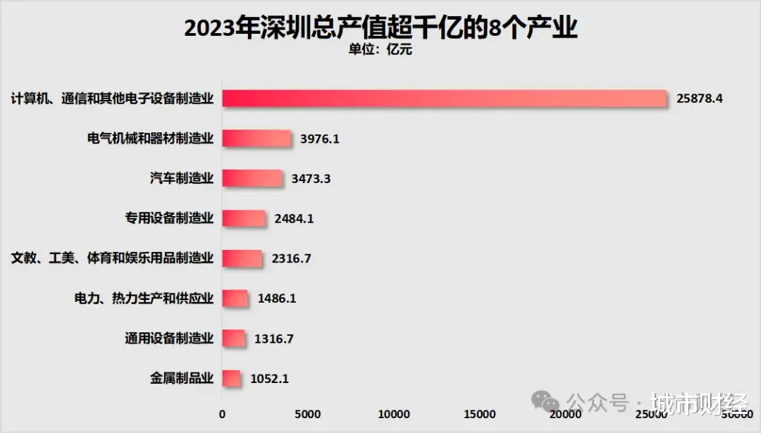 2023年,深圳市的计算机、通信和其他电子设备制造业总产值2.59万亿元,位居全国第一。仅这一个产业的总产值,就超过了广州市全部工业总产值。