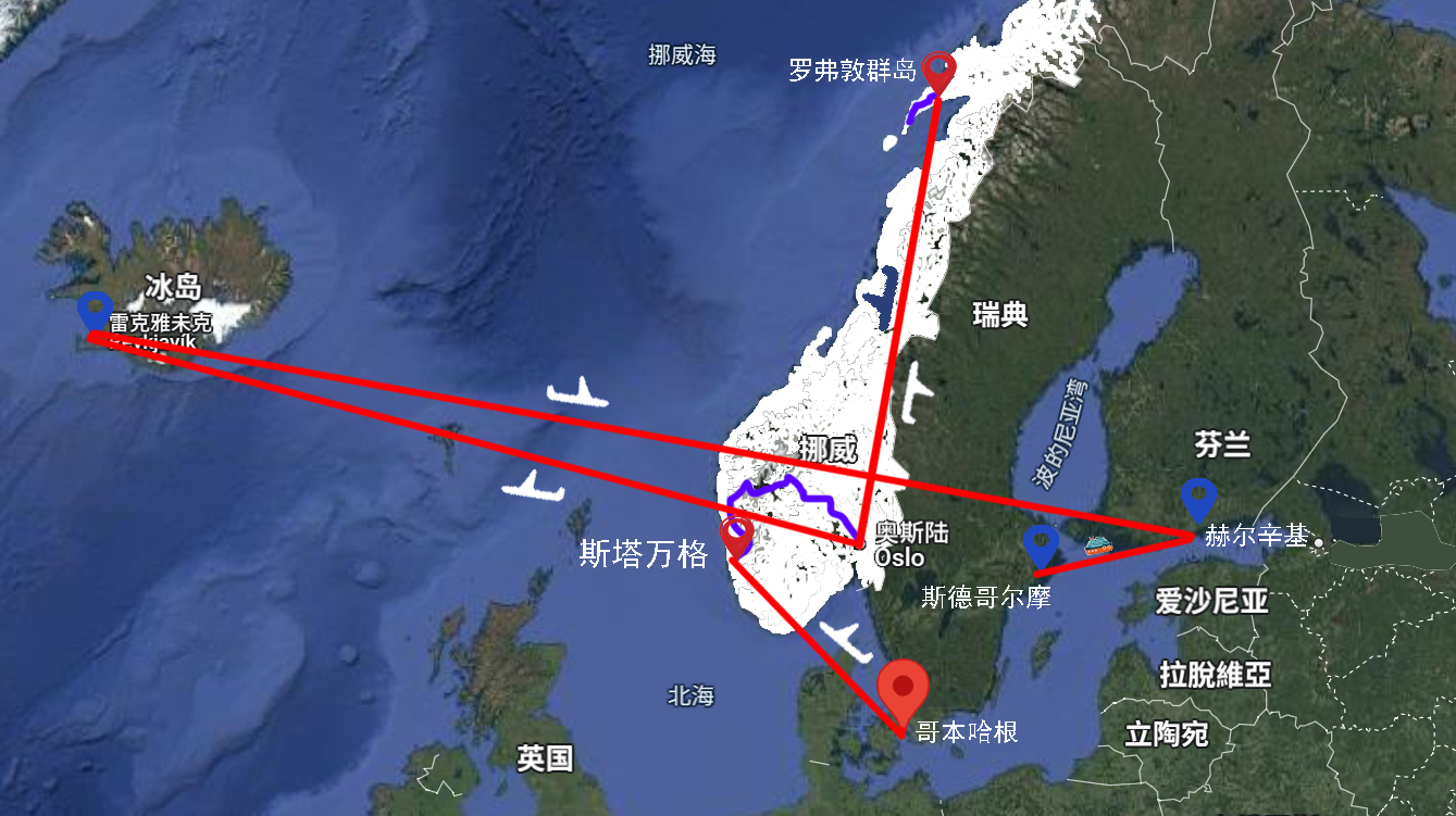 第1天:北京 ✈ 哥本哈根(丹麦)第2天:哥本哈根第3天:哥本哈根 ✈ 斯塔万格(挪威)第4天:斯塔万格 布道石 斯塔万格第5天:斯塔万格 卑尔根第6天:卑尔根 哈当厄峡湾 松恩峡湾第7天:松恩峡湾 古尔第8天:古尔 奥斯陆第9天:奥斯陆 ✈ 罗弗敦群岛第10天:罗弗敦群岛 第11天:罗弗敦群岛 第12天:罗弗敦群岛 ✈ 奥斯陆第13天:奥斯陆 ✈ 雷克雅未克(冰岛)第14天:雷克雅未克 瓦特纳冰川 杰古沙龙冰湖 赫本第15天:赫本 羽毛大峡谷 黑沙滩 维克第16天:维克 双瀑布 蓝湖 雷克雅未克第17天:雷克雅未克 黄金圈 雷克雅未克第18天:雷克雅未克 斯奈山国家公园 雷克雅未克第19天:雷克雅未克 ✈ 赫尔辛基(芬兰)第20天:赫尔辛基 ️ 斯德哥尔摩(瑞典)第21天:斯德哥尔摩 ✈ 北京第22天:抵达北京