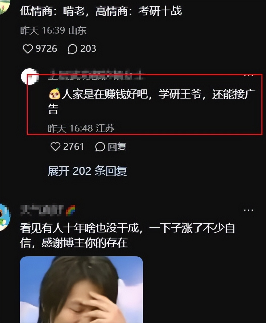 但渐渐的家长们突然醒悟过来了,如果考研连续失败,那跟啃老有啥区别。