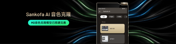 核心技术:搭载 Sankofa AI 音色克隆技术,已完善 MD 音色克隆模型,Sharp MS100、Sony MZ-R30 等经典型号纳入克隆库,磁带音色模型推进中。