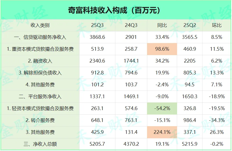 奇富科技最明显的变化轻重资本业务收入变化——重资本撮合业务同比增加98.6%,轻资本撮合业务减少54.2%;另外其他服务费增加224.1%。