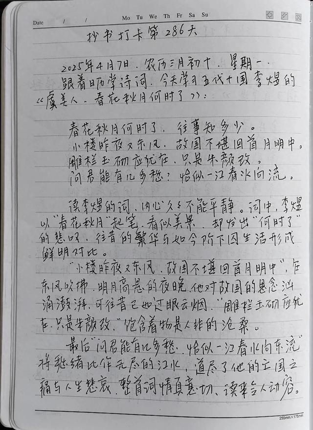 跟着日历学古诗词。祝福你在2025,每一天都如诗如画。今天学习/五代十国/李煜《虞美人·春花秋月何时了》: