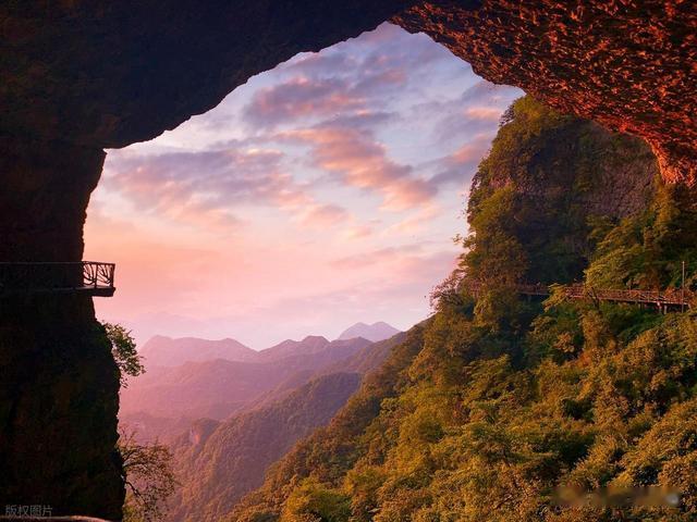 高山上的山洞,不愧为"避暑山庄",群山环绕,绿萌叠翠,景色宜人。登老鹰岩,纵目远眺,远处可见山城重庆的绿树层楼,使你对历史悠久的名城,长江上游的经济振兴的中心,升起肃穆崇敬的情怀,近处,居高临下可俯瞰沙坪坝上蒸蒸日上的繁荣景象和近郊区的风光。山麓二郎雄关气势磅礴;层层梯田美丽如画。清代诗人鲁岱写下《二郎关》一诗,诗云:
