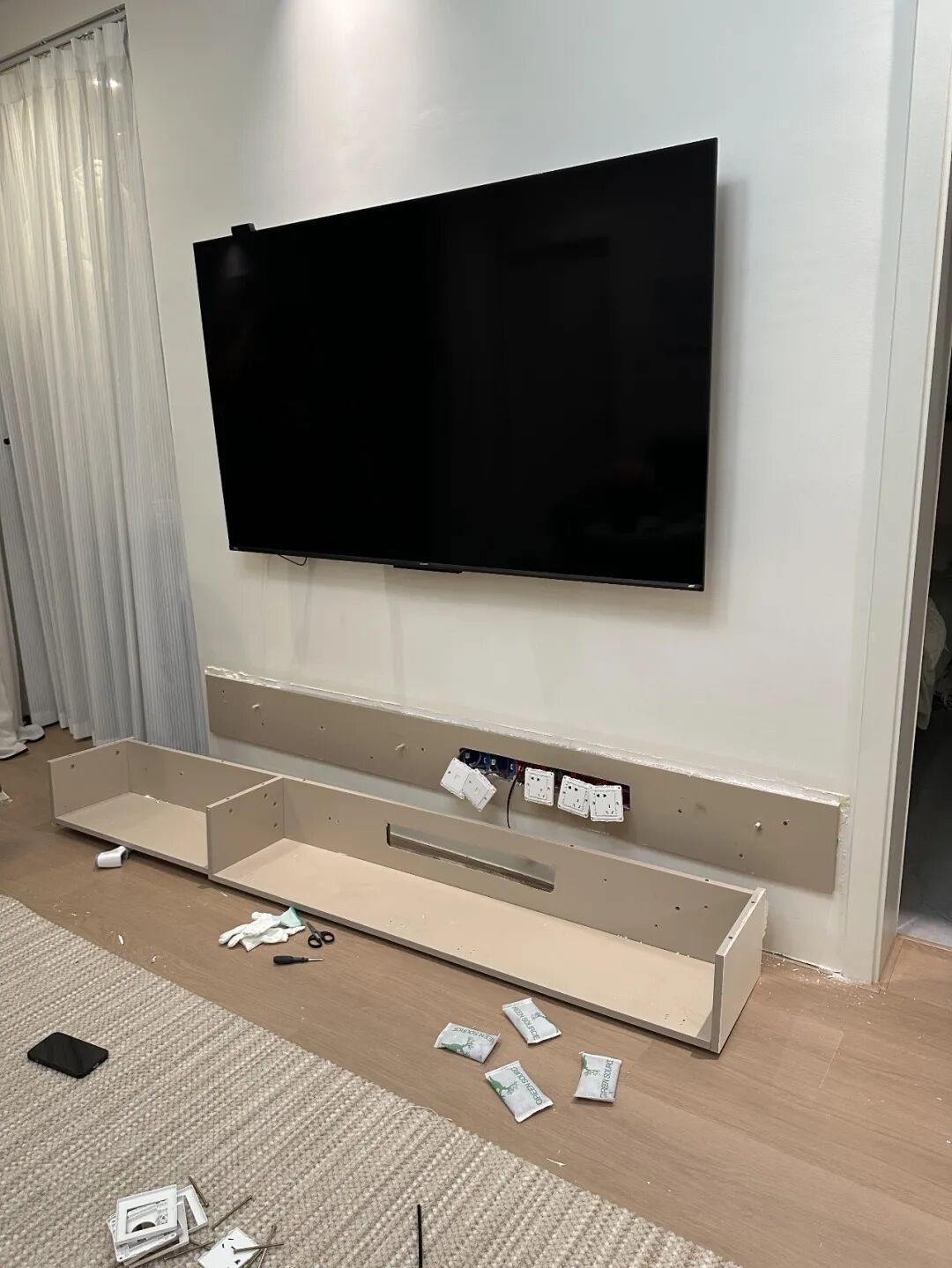 做的时候比普通电视柜贵一倍不止,还要找专业师傅加固,不然根本不结实。
