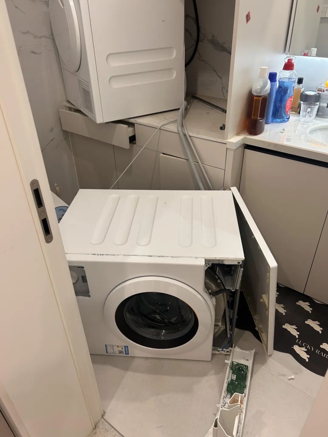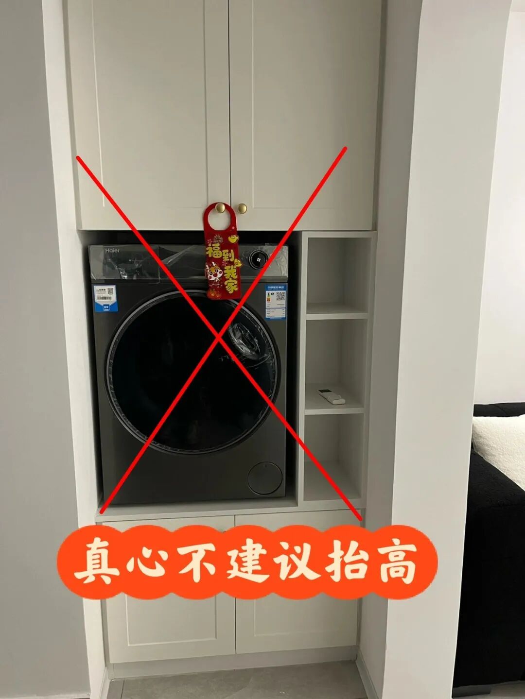 听了博主的鬼话,说“抬高洗衣机,不用弯腰更省力”,花额外的钱把洗衣机抬高,结果入住后,差点出大事!