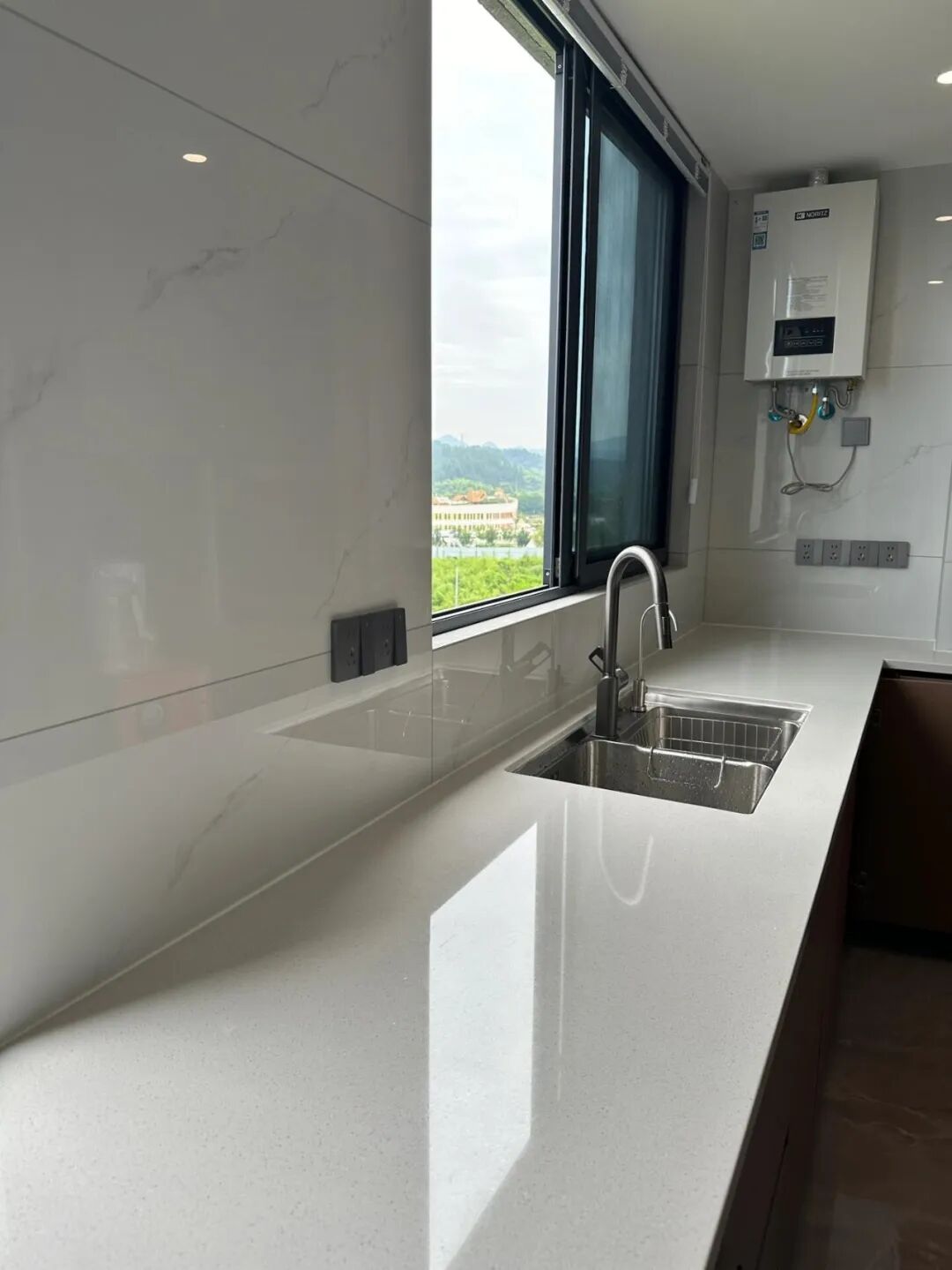 劝大家,厨房台面,选个耐用、好清理的石英石就够了。
