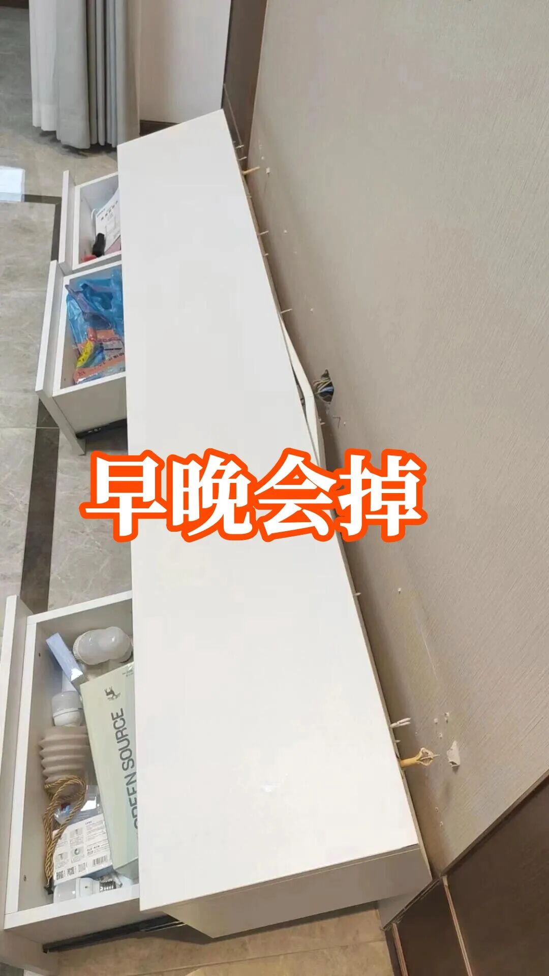 网友@大柚子 家装的悬空电视柜,用了一年墙面开裂,有掉落的迹象,就直接砸了,她说太后悔了。