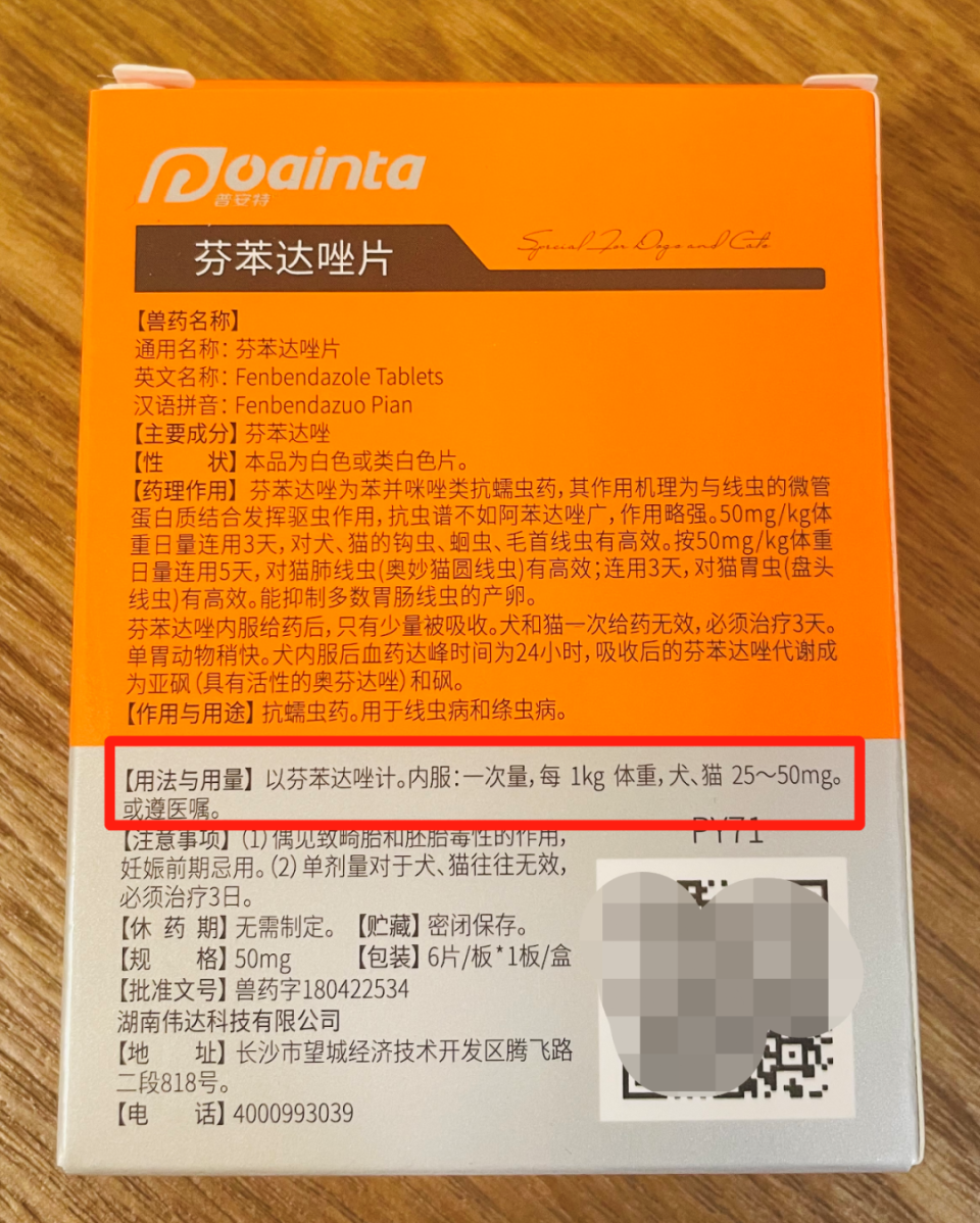 严格遵循产品包装上介绍的用法和用量,比如普安特的芬苯达唑片就明确了内服用量:每1kg体重,犬、猫25~50mg。具体用量需要参考宠物年龄、体重两个维度综合考虑,无论是什么药都要切记不可喂多,是药三分毒,严格遵循医嘱才是正确的方式!