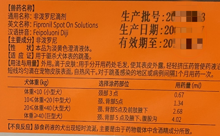和人用的药品类似,正规驱虫药都会在产品外包装上印有成分、性状、用法和用量等信息。一定要预先读完这些内容,了解能驱除的虫谱和使用注意事项,严格按照要求对宠物使用。