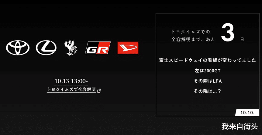 丰田发布预告图,宣布10月13日,下午1点将有新车发布,从标志来看涵盖了多个品牌,包括丰田、雷克萨斯、皇冠、GR和大发。