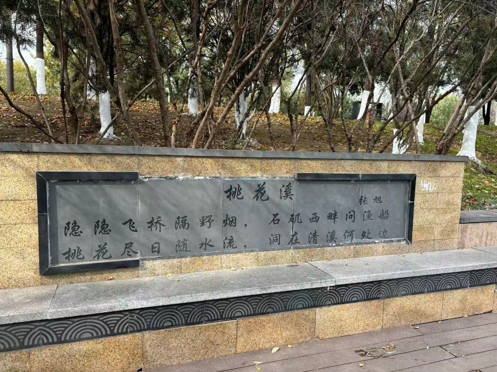 可以确定的是,浐河的这个桃花潭,和李白笔下的那个桃花潭,完全八竿子打不着。所以,公园断然不敢把《赠汪伦》搬过来,说这里就是那个“深千尺”传千年的桃花潭。不过,公园里却有一座石碑,上面刻录了一首唐代非著名诗人张旭所做的非著名诗作《桃花溪》,貌似给这个桃花潭,映射了一个源远的流长。