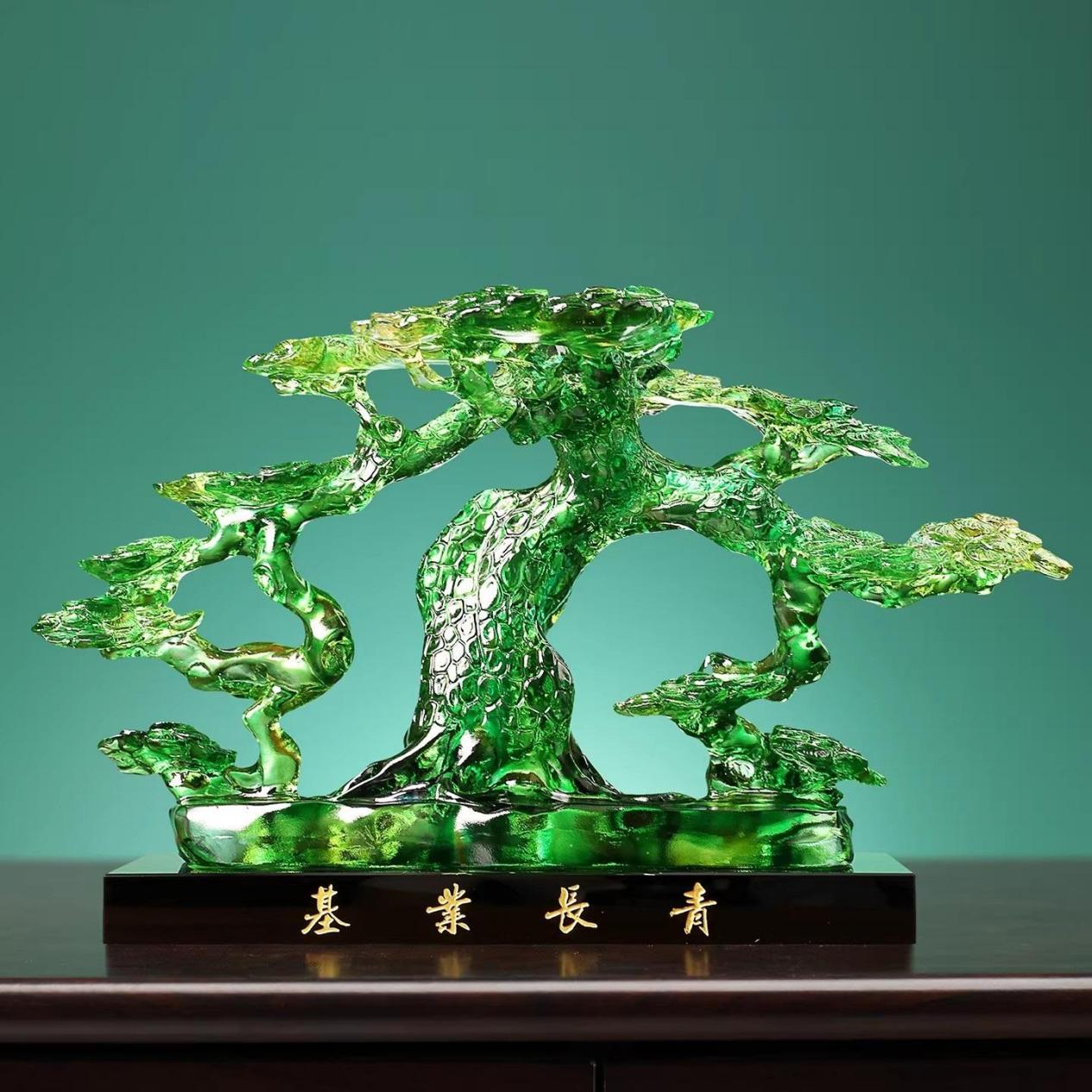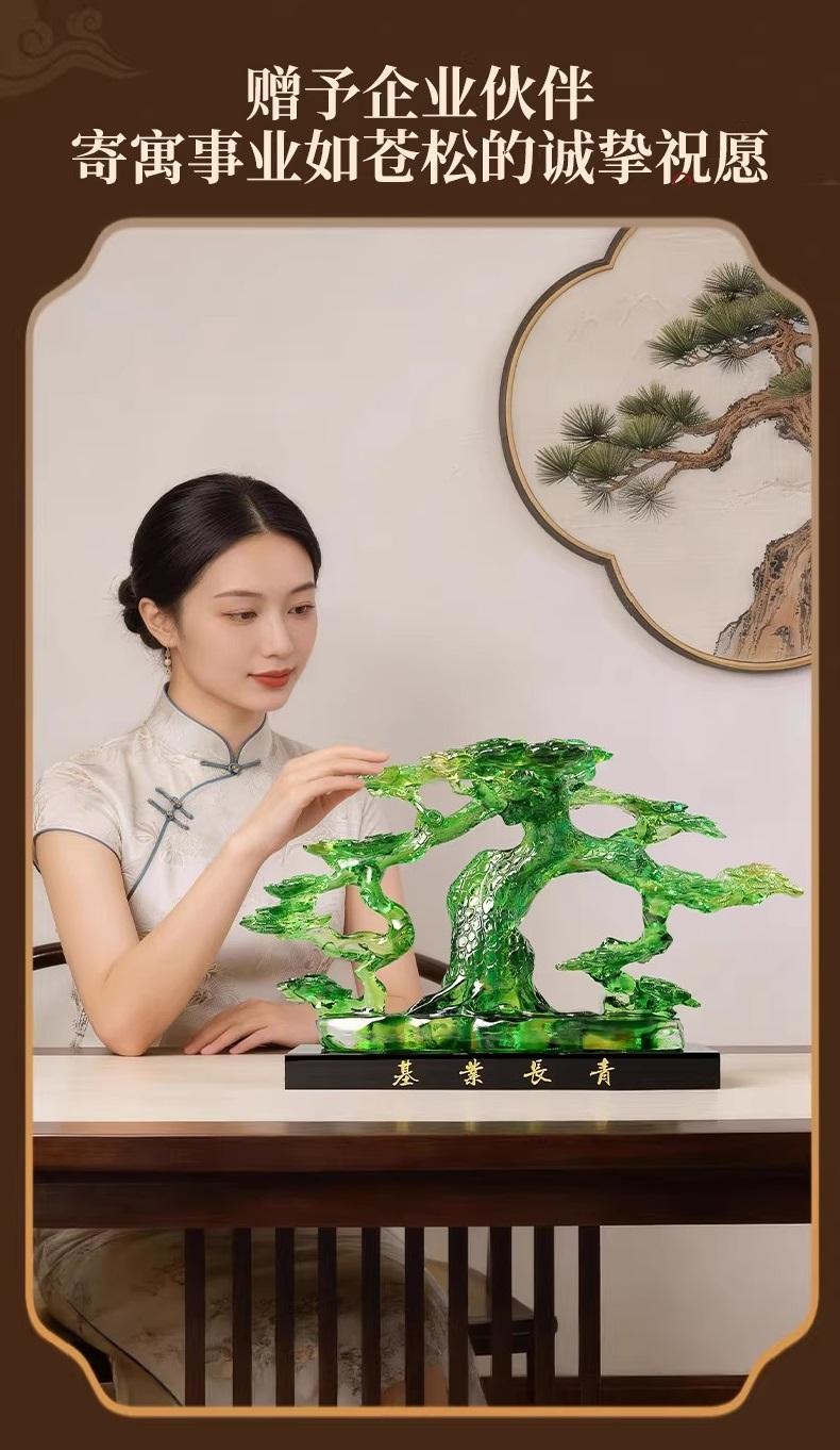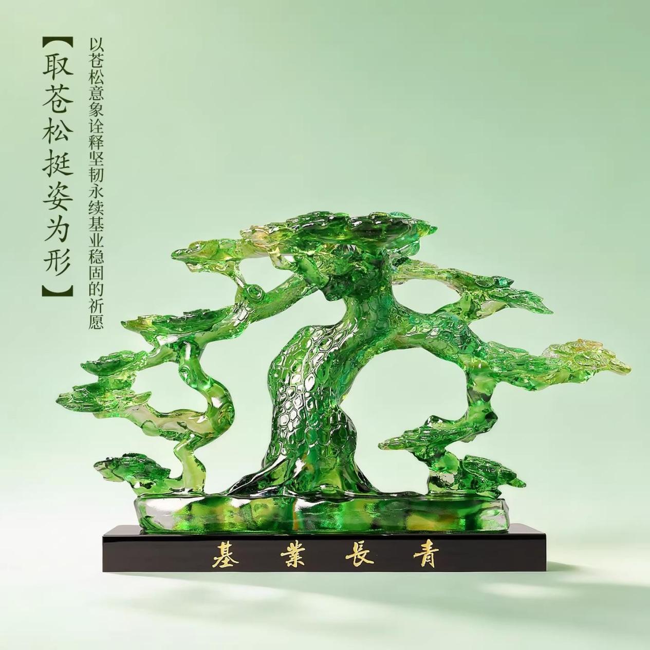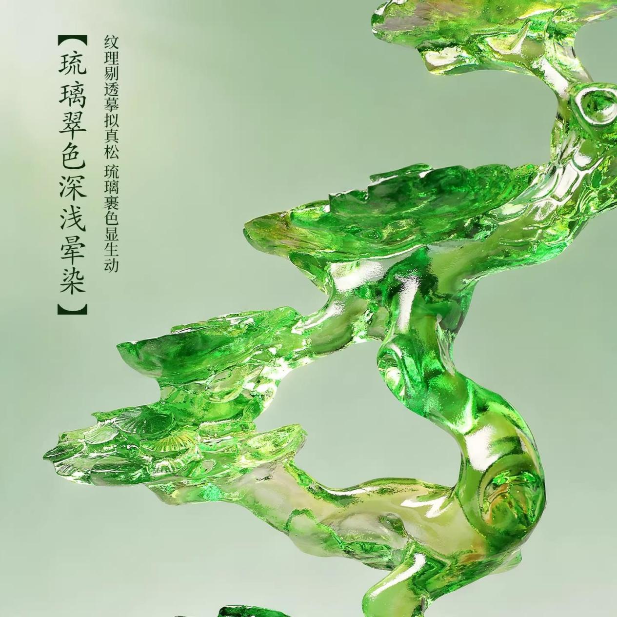 在众多的琉璃工艺品中,古法琉璃基业长青招财迎客松摆件别具一格。它以黄山迎客松为原型,将迎客松坚韧不拔、广迎宾客的美好寓意,与琉璃的精美工艺完美融合 。