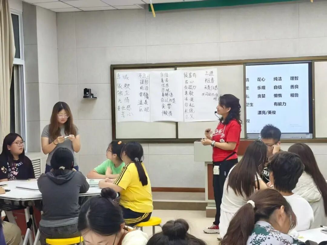 “五色拼盘:谁更适合我”活动率先开场,现场气氛热烈。白板上罗列着描述特质的词语,同学们手持各色便利贴,或沉思或小声讨论,然后郑重贴上自己的选择。各色便签很快在关键词旁汇聚成彩色“小山”,既像是青春的投票,也勾勒出大家对理想伴侣的期待。
