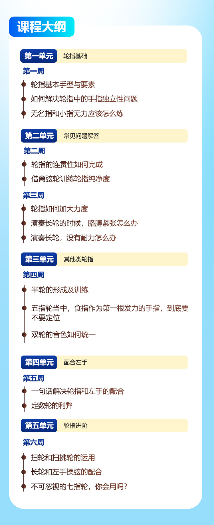 从⼿型到⾳⾊,六周带你练出均匀连贯的轮指!