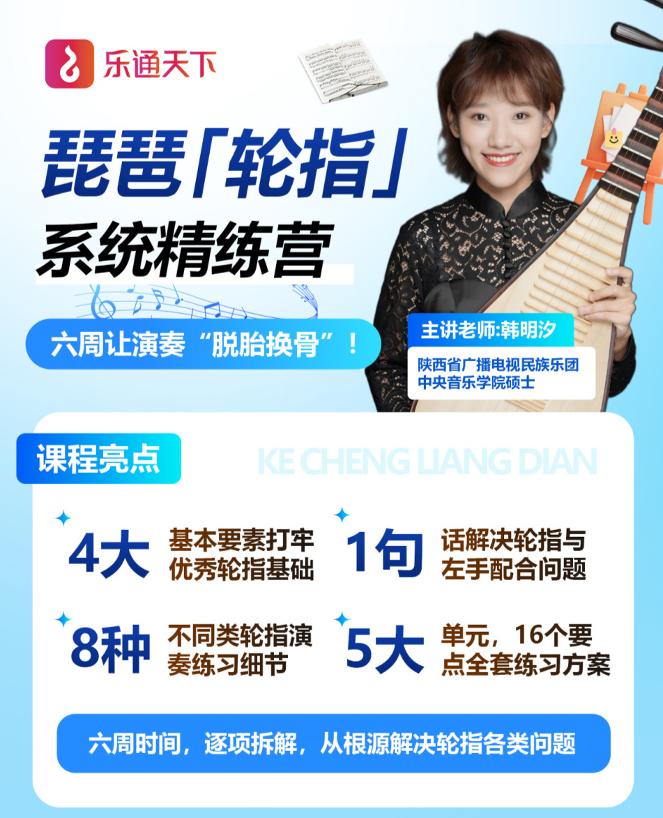 乐通天下 × 韩明汐⽼师琵琶基本功系统课程第二期它!来!了!
