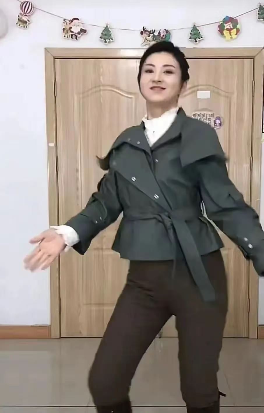斓曦似乎很是酷爱暗色系服装,短款暗绿色风衣搭配紧身棕色裤,这样的搭配听起来就很奇怪,更别说穿上身了,果不其然,斓曦都上身效果着实辣眼睛!
