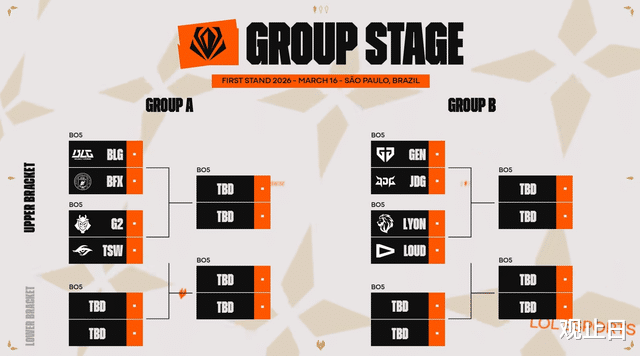 BLG与BFX、G2、TSW同组,首战BFXJDG与GEN、LYON、LOUD同组,首战GEN