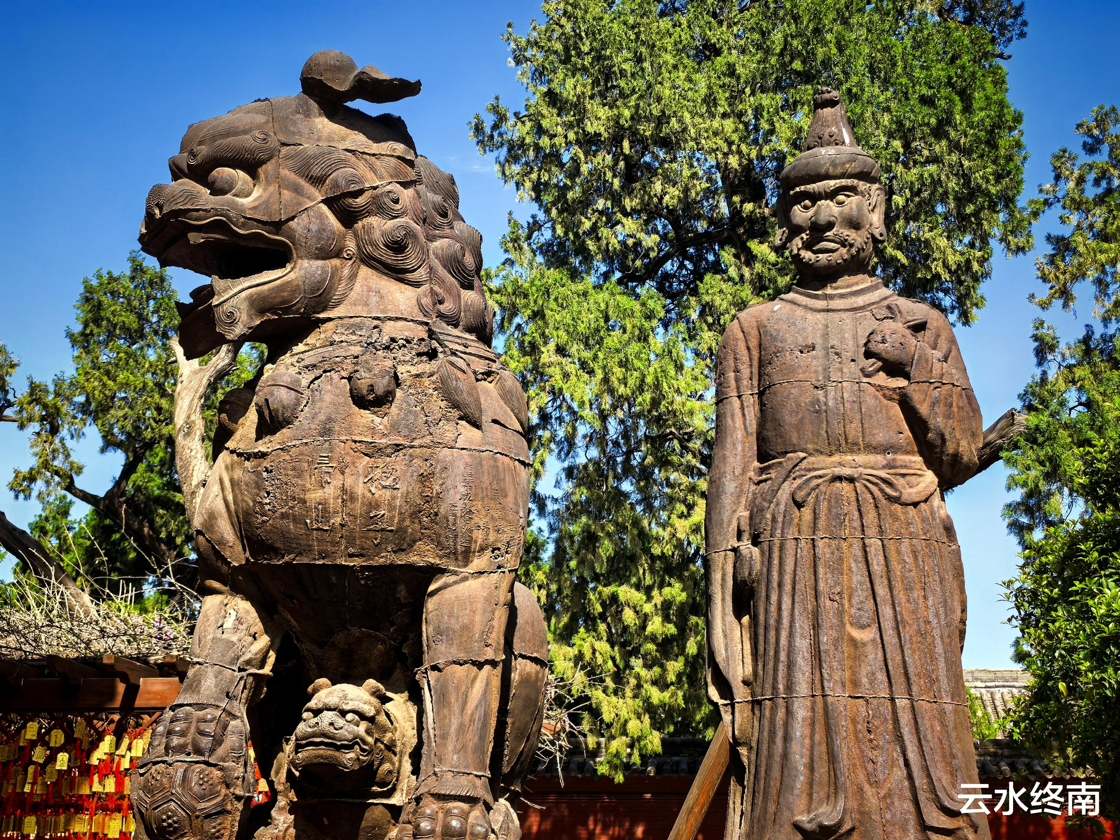 崇宁殿外面有旗杆,这是代表唯一与权力。还有铁狮子和胡人像、华表。华表也是帝王宫殿才有的规格。