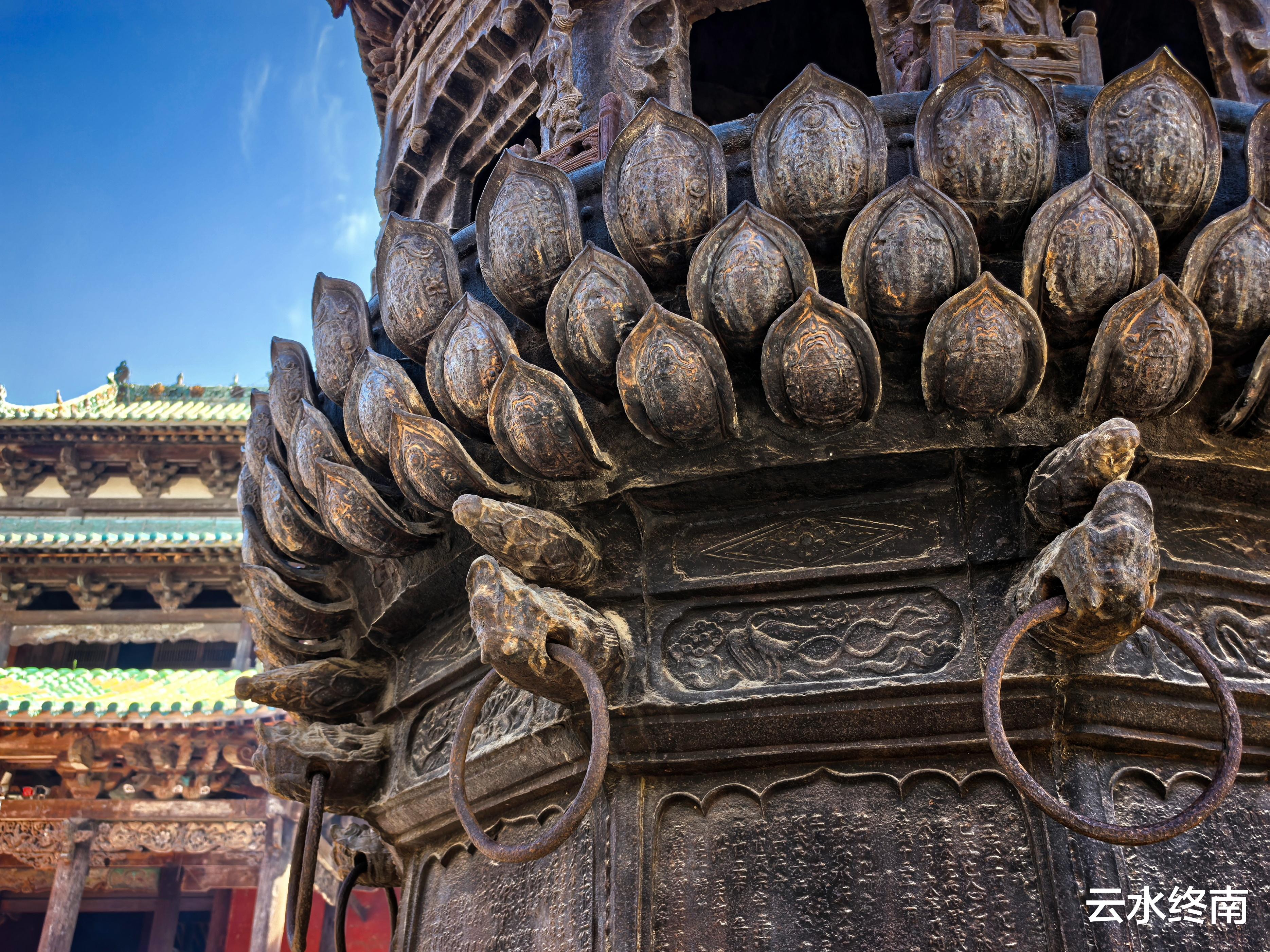 这个10米高的铜香炉造像精美,我以前是没有见过的,据说有700年历史了。