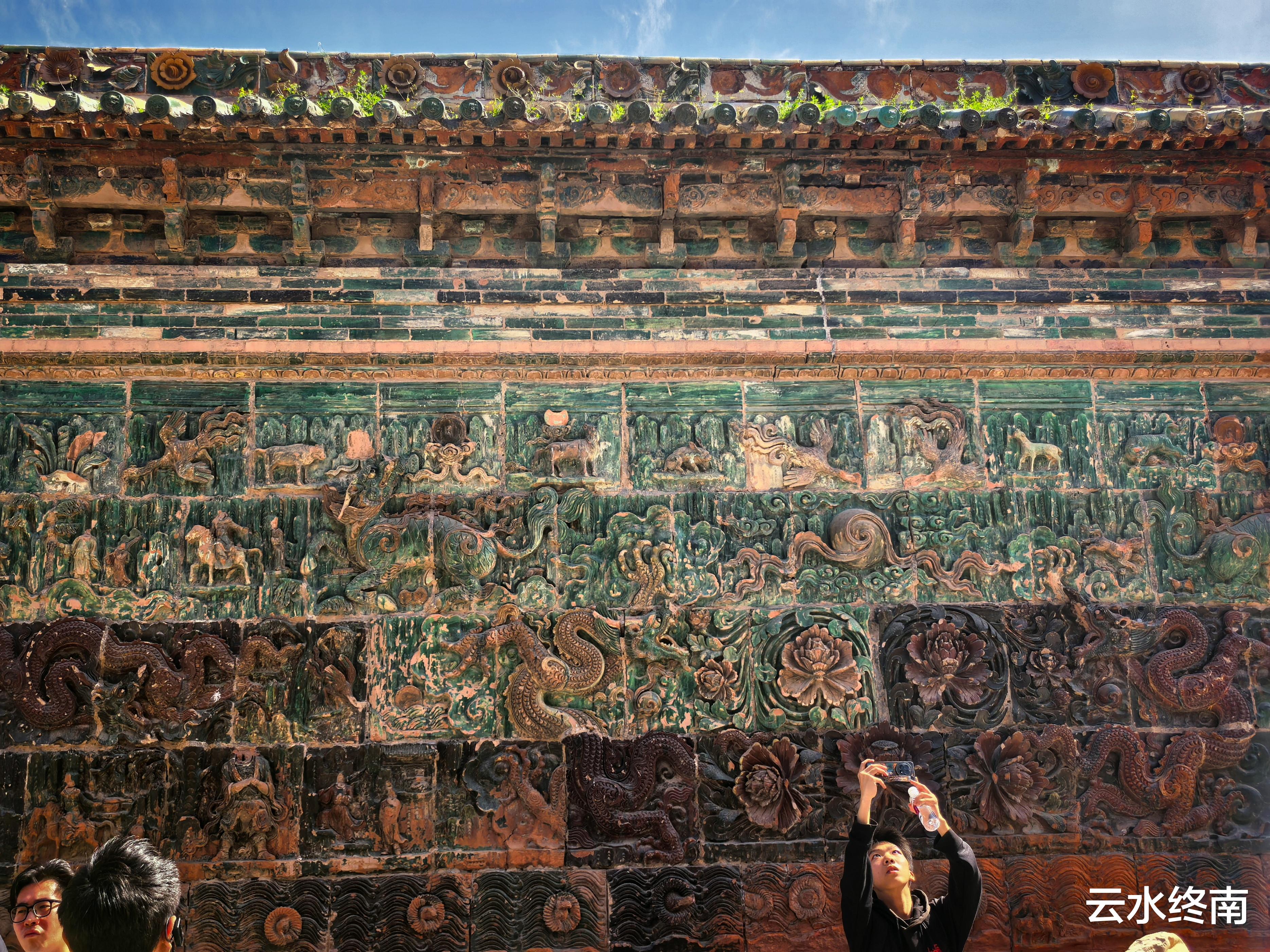 端门前面是琉璃四龙壁,从上到下天地海三界,烧制的很是精美,可惜有很多毁坏。