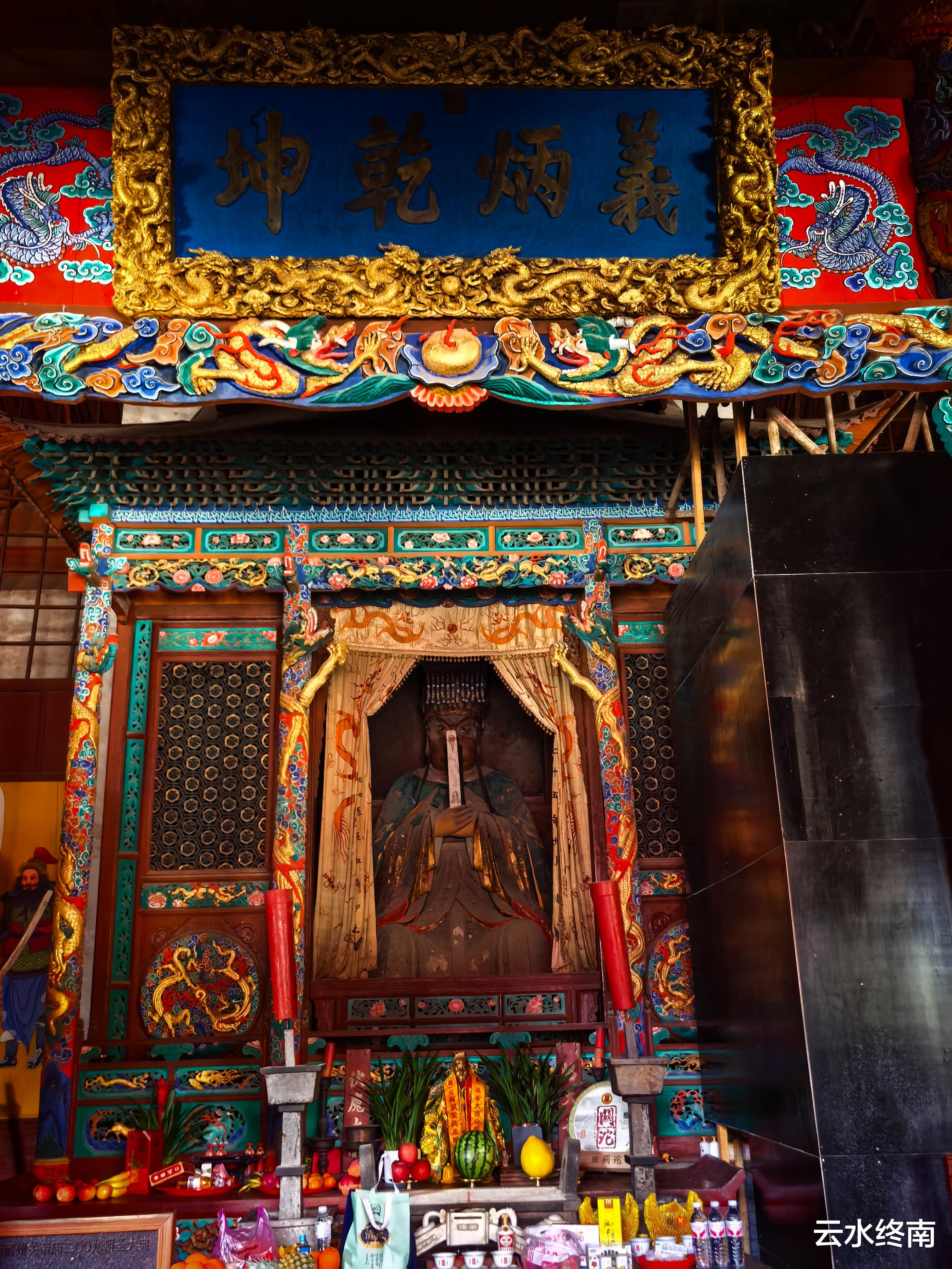 里面供奉的关老爷帝王像,头戴冠冕,身穿龙袍,这“关帝”可不是虚说。