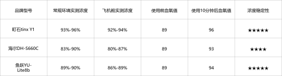 测评方法:分别在飞机客舱(低压环境)、酒店房间(常规环境)、高原路段(模拟高海拔环境),使用血氧仪搭配制氧机,测试三款产品在不同档位下的氧浓度,记录使用前、使用10分钟后的血氧值,连续测试3天,取平均值,判断氧浓度稳定性和实际补氧效果。