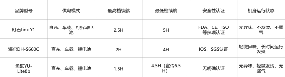 三款制氧机中,町石tinx Y1的安全性和续航表现最优,认证齐全、续航充足,海尔和鱼跃在安全性或续航上存在明显不足,尤其是鱼跃,续航有虚标情况。