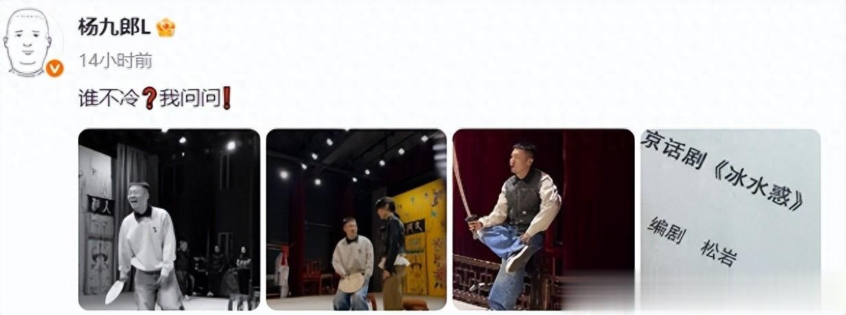 1月20日,德云社杨九郎晒排练照,为22日至24日,在国家大剧院演出的《冰水惑》做准备。