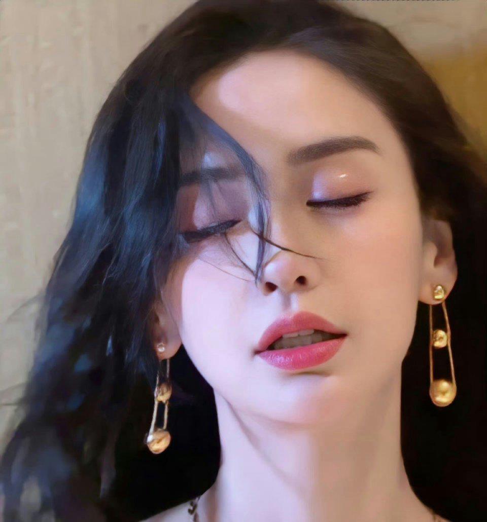 大眼睛、尖尖的下巴、高高的鼻梁,再加上长长的飘逸秀发,纯欲风格让人联想到杨颖,但整体的气质嘛,差距挺大。有不少网友都觉得她的脸看上去有点“塑料感”和“科技感”。