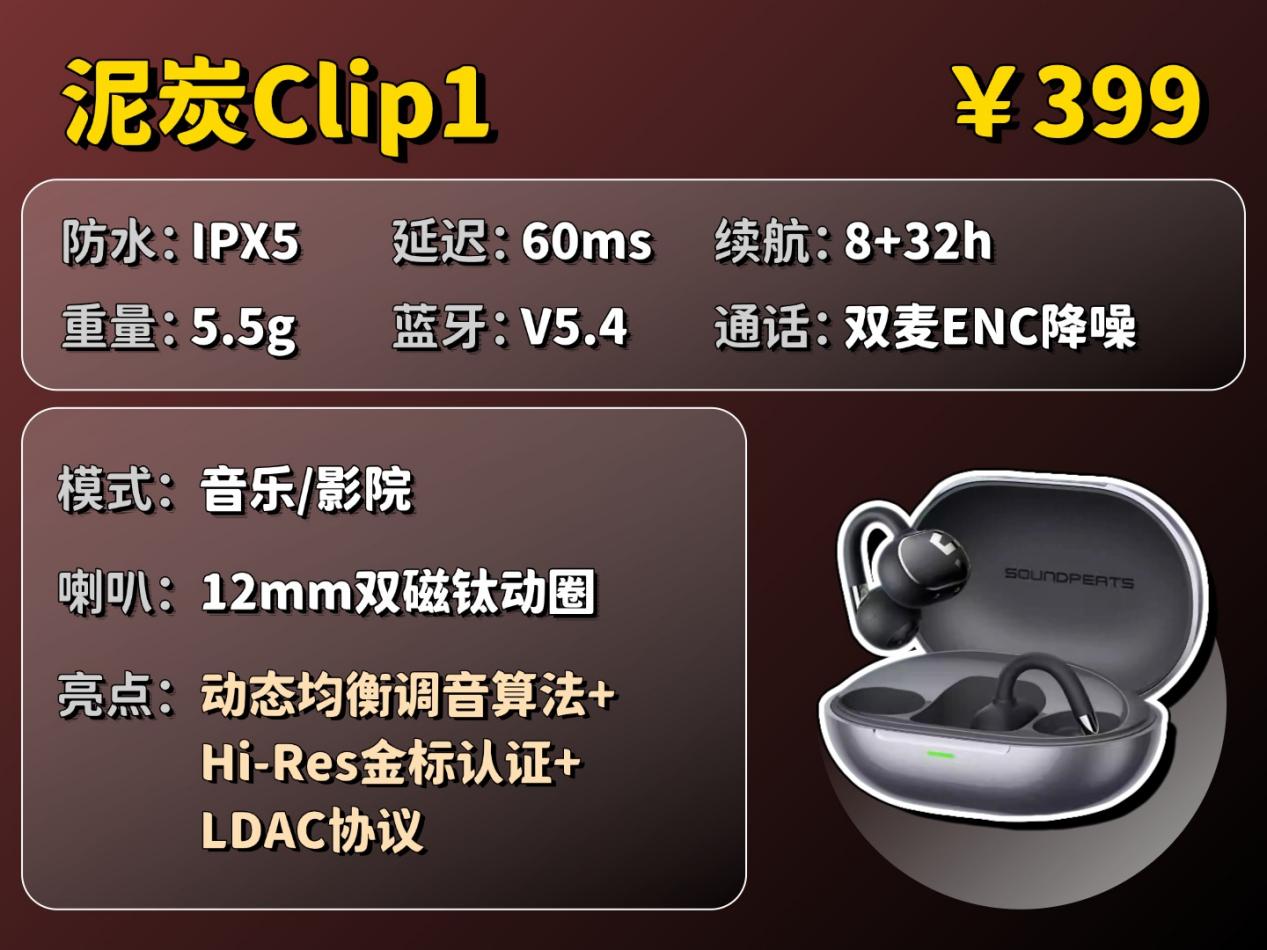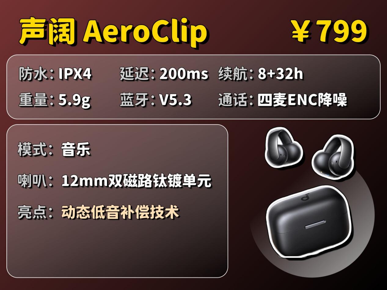 推荐理由:在同价位耳夹展现出专业的声学技术,核心功能仍具竞争力