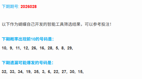 26024期的12码大底命中了1个号码,文章开始分享的规律开出1个号码!