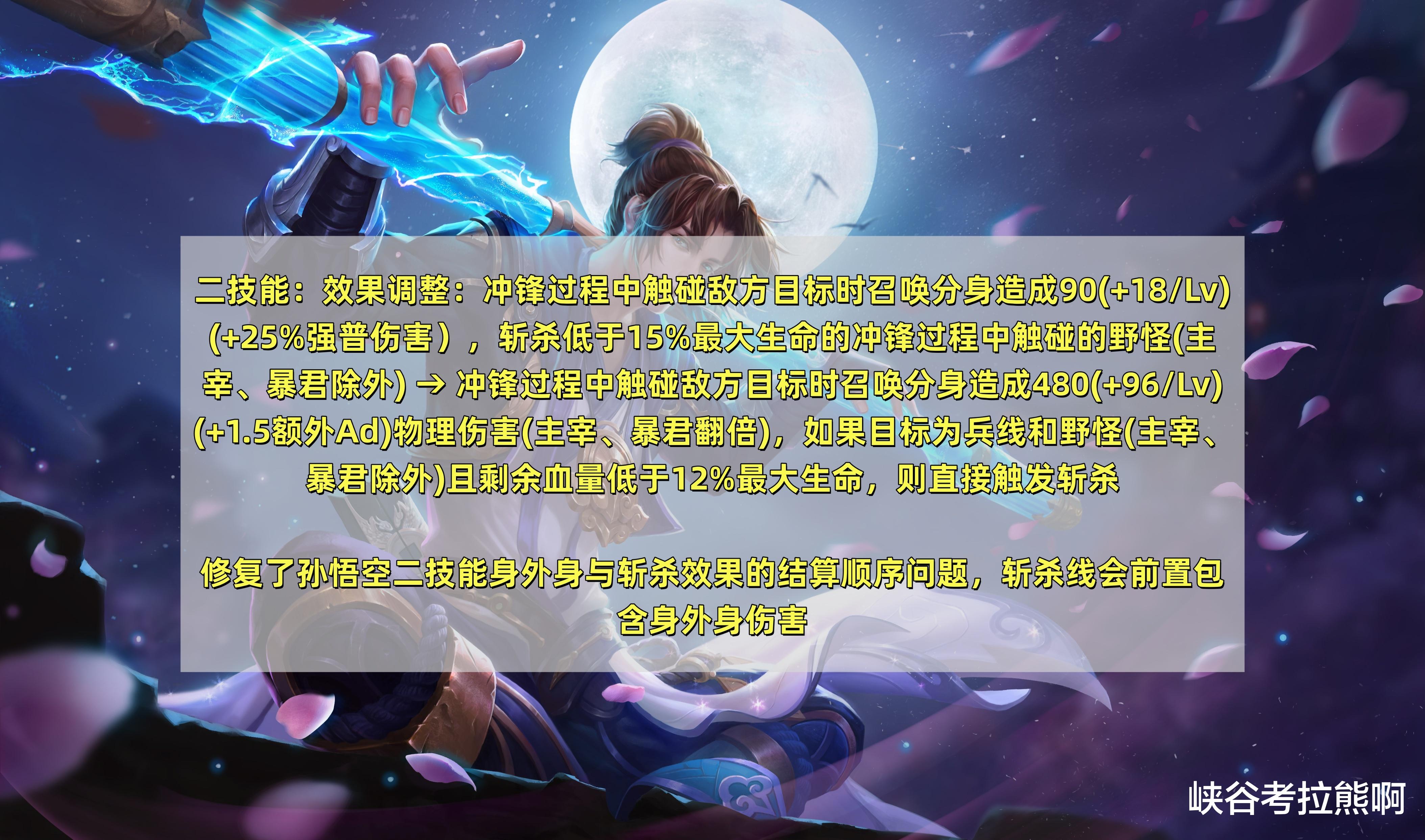 二技能:本次大幅度提升了二技能的基础伤害和额外物理加成,对主宰和暴君的伤害还会翻倍,且对小兵也能触发斩杀伤害,但代价是25%强普伤害被移除,身外身对非英雄单位的斩杀线从15%降至12%。