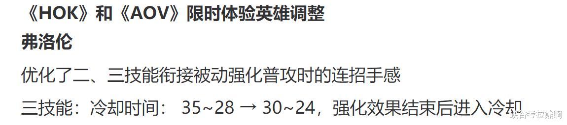 本次优化了弗洛伦二三技能衔接被动强普的连招手感,大招的冷却时间也下调了5~4秒,但代价时强化效果结束后才会进入冷却,典型的国际服本土化数值机制调整方式。这个英雄很强,就看能否有机会上线正式服了。