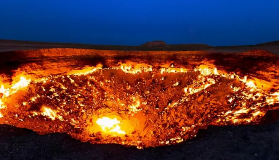 1971年,那时候还是苏联时代。苏联的勘探队跑到卡拉库姆沙漠找天然气,钻机往下打,打着打着,突然钻头打穿了一个地下溶洞。好家伙,地底下是个巨大的天然气库,钻头一抽,地面直接塌了,几十米的大坑凭空出现。